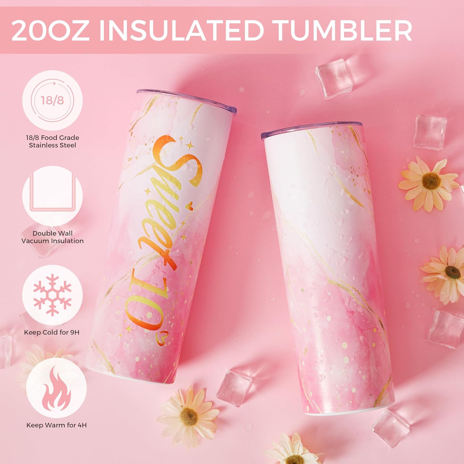 Unique 10th Gift Ideas-20oz Tumbler: Keep her hydrated in style with our vibrant “Sweet 10” tumbler—both motivational and gorgeous! Crafted from durable stainless steel, it maintains hot drinks for 4+ hours and icy cold for up to 9. Featuring a leak-proof lid, it’s perfect for school, home, or anywhere she goes. Easy to carry, even easier to clean—a practical and uplifting gift she’ll love using every day