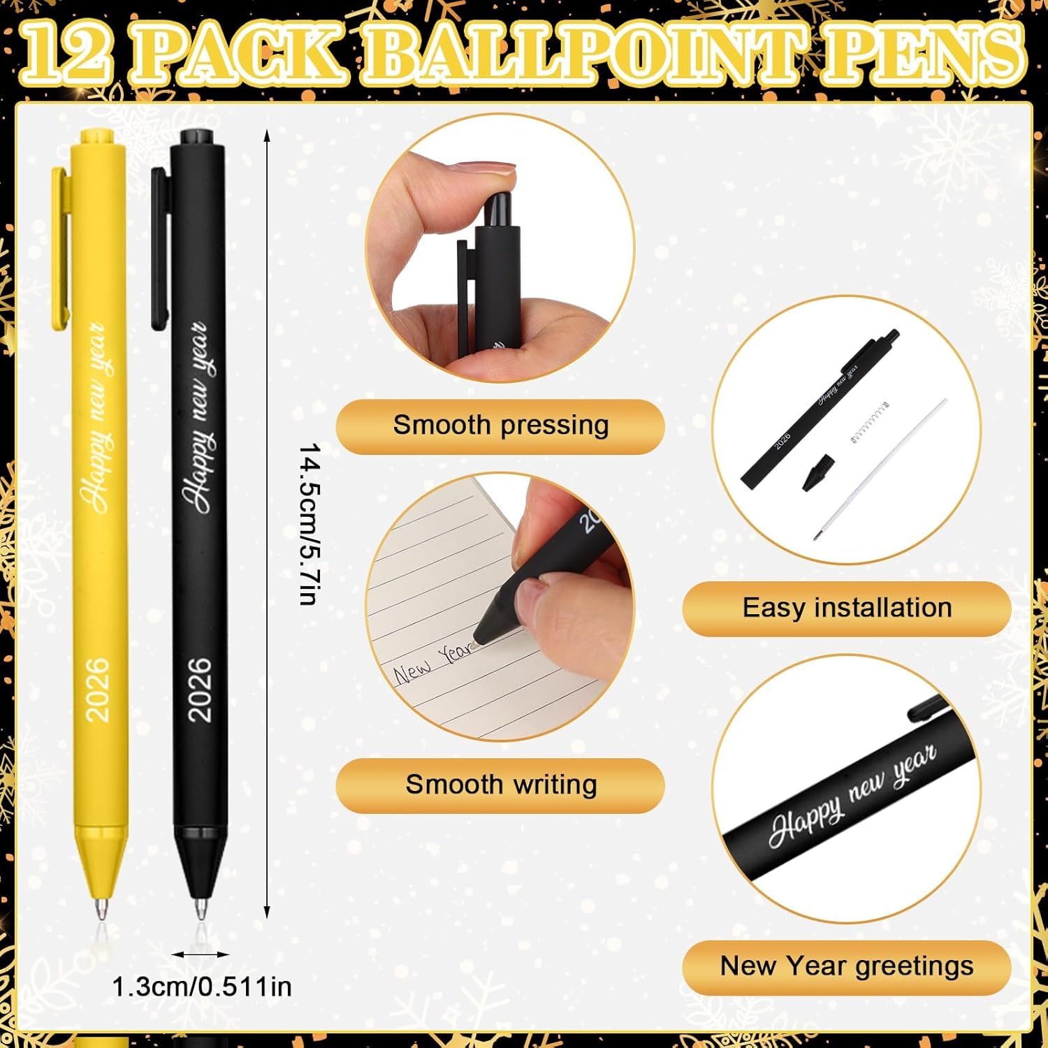 Innovative Design: Our ballpoint pens are printed with the wording “2026 Happy New Year”, boasting a fresh and festive design that immediately conveys New Year’s cheer. They pair perfectly with our black-and-gold happy new year notebooks, whose covers feature enjoyment, engaging texts. These beautifully matched pen-and-notebook sets are exquisite happy new year gifts for coworkers, friends, or employees