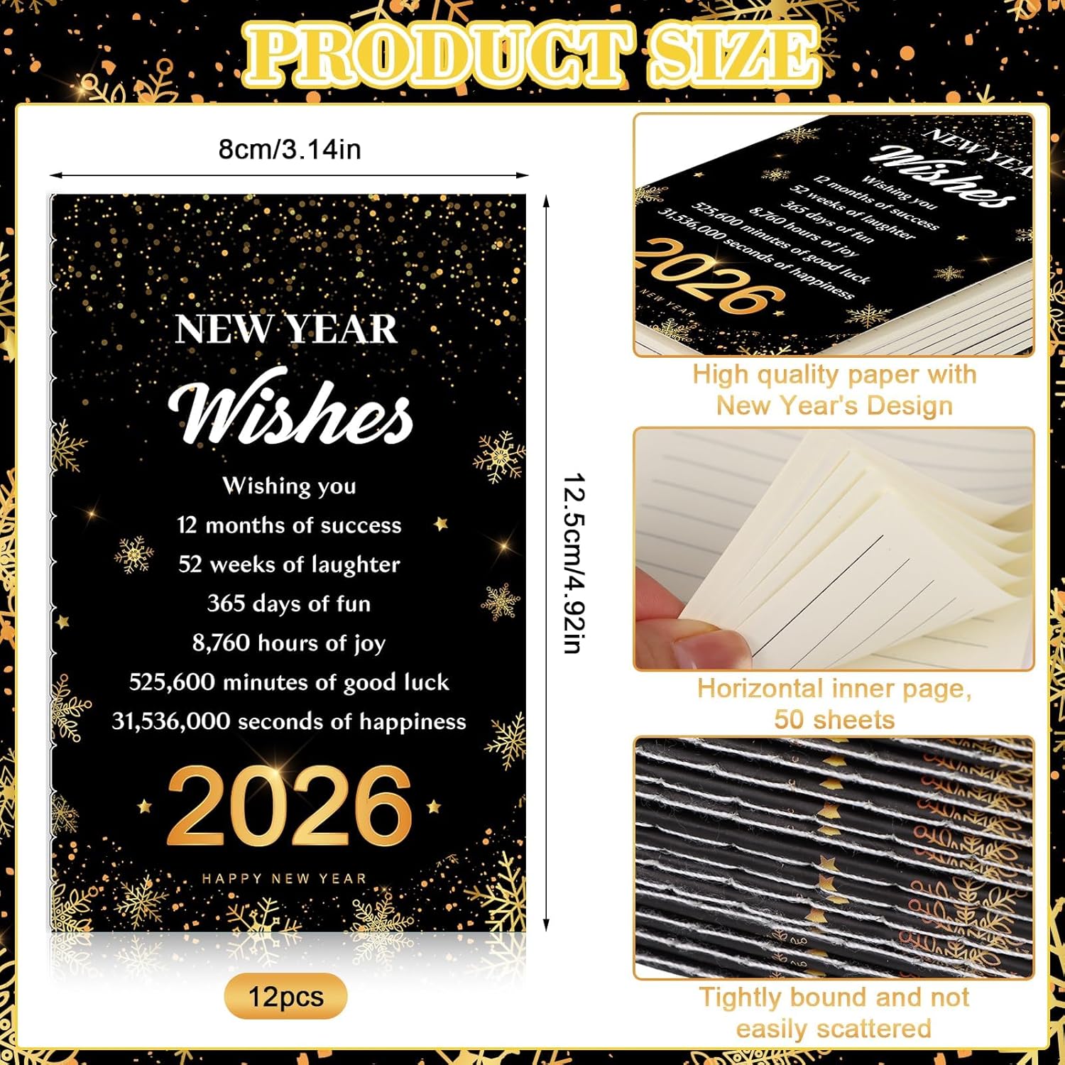 Happy New Year Gifts: This premium set includes 12 festive “2026 Happy New Year ” ballpoint pens, 2 colors, black and yellow; and 12 new year notebooks; perfect as bulk happy new year gifts for coworkers or memorable party giveaways. With ample quantity, it effortlessly transforms your New Year’s Eve bash or corporate celebration into an unforgettable experience