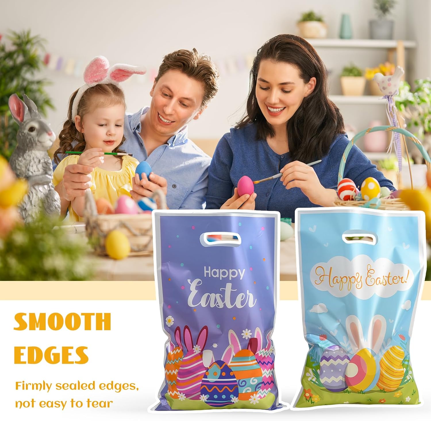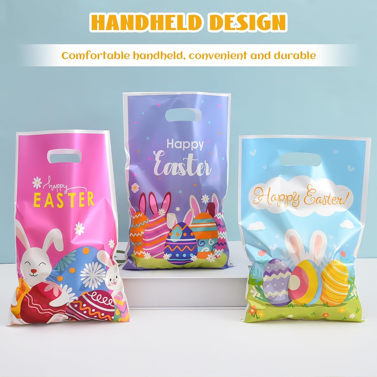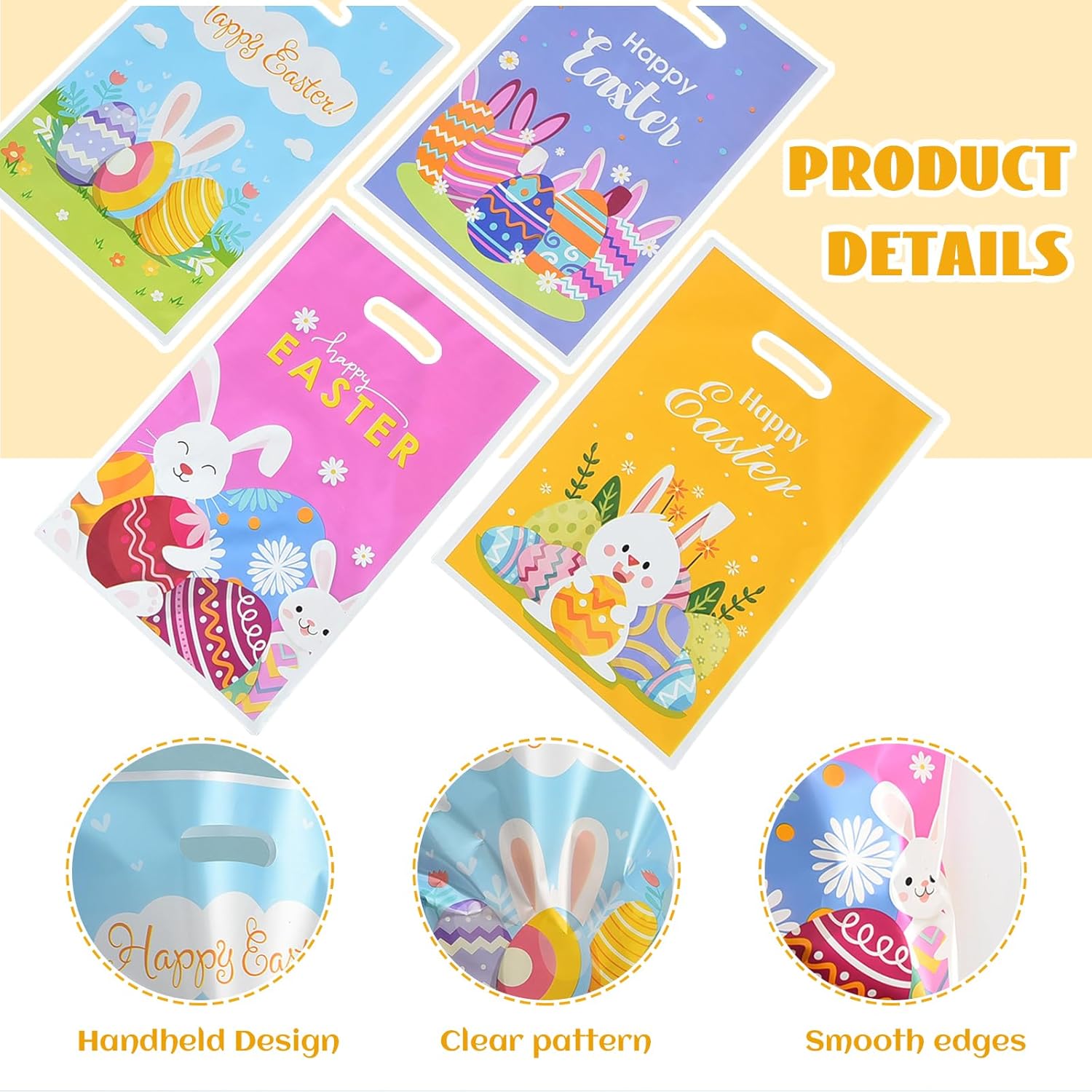 HIGH QUALITY: Our Easter bags are made of durable material that ensures the safe transport of candies or small gifts. The shiny surface and cute design make them a real eye-catcher at any party. This bag can be used for any type of Easter celebration, including Easter bags with candies.