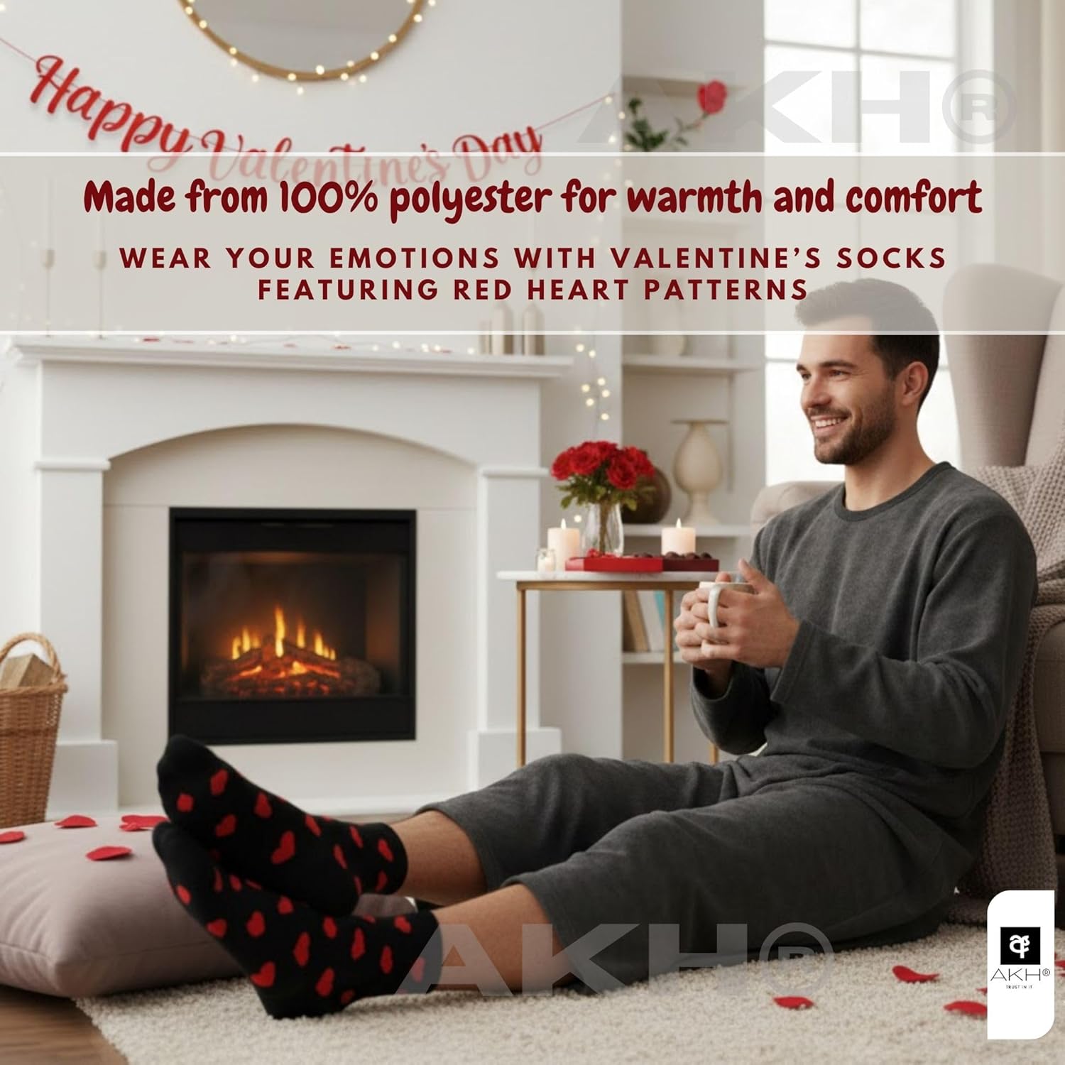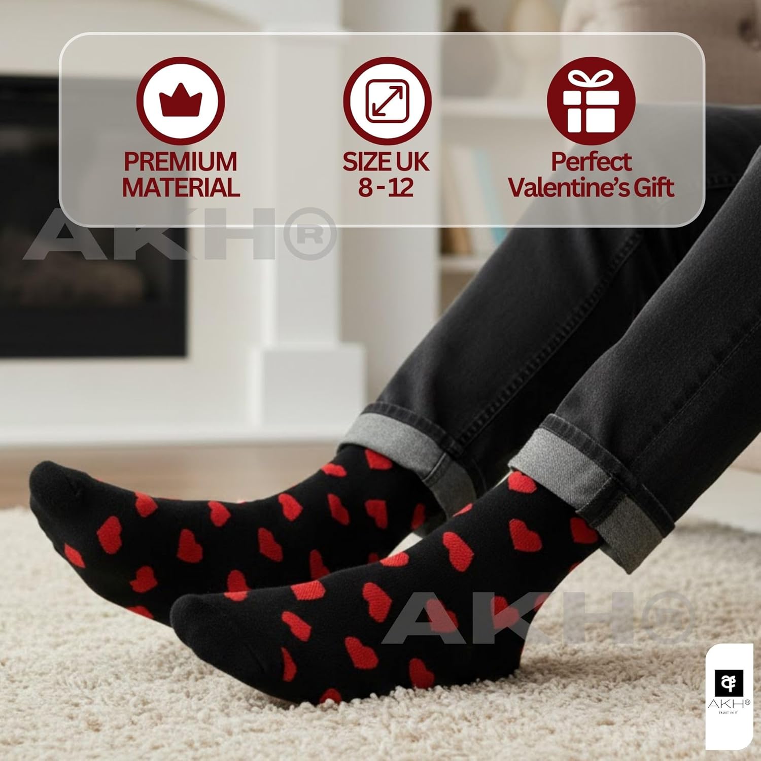 Be the first to review “AKH® Valentine’s Men’s Socks with Red Heart Pattern, Romantic Love Novelty Gift for Him, Boyfriend & Husband, One Size UK 8-12, Comfortable Polyester Present, Single Pair”