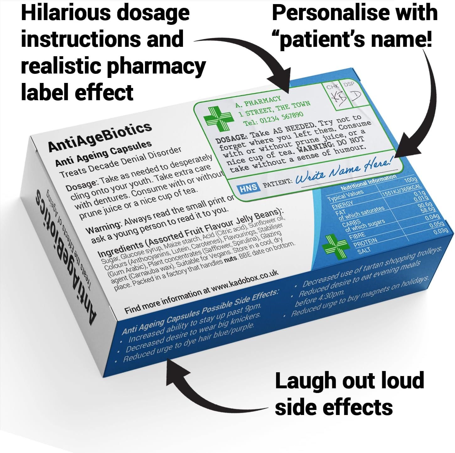 Realistic Medicine Box Design: With a design that looks just like you’ve collected a prescription from the chemist, catch your ‘patient’ off guard only to watch their face as the joke sinks in.