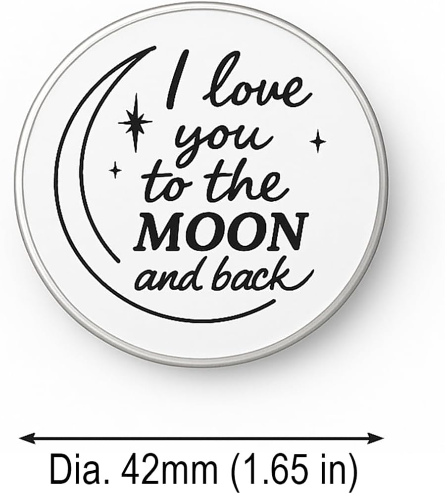 The tin lid is printed with “I love you to the moon and back”, making a heartfelt keepsake for partners, family and friends.