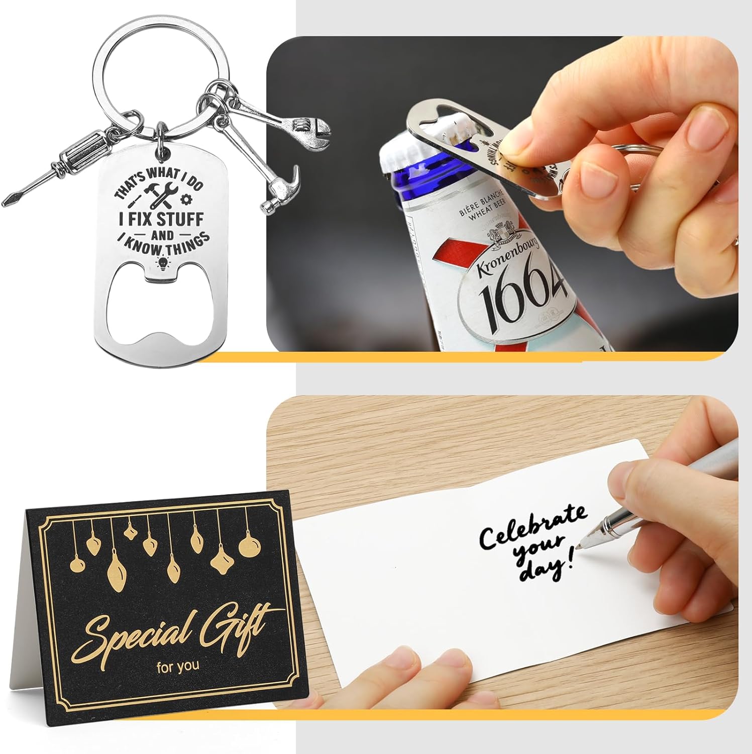 Portable Keyring & Personalized Greeting Card: The bottle opener keyring is convenient to carry keys and is always here when you need to open a cold beer in a rush. Add a heartfelt touch by writing your own message on the included greeting card – a thoughtful, personalised gift for men.