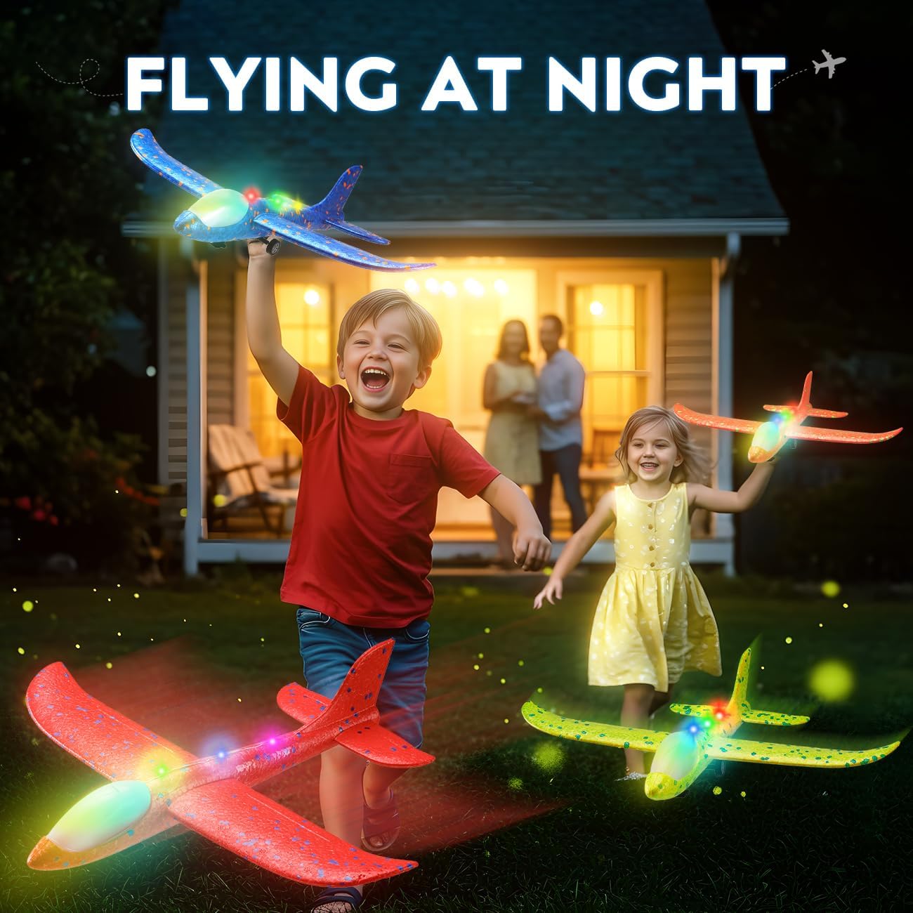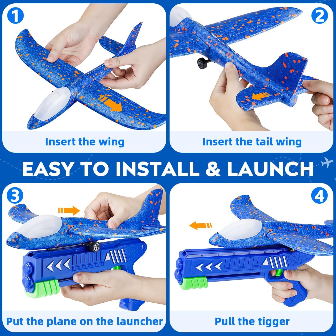 2 in 1 Airplane Toys: This airplane launcher toy includes 2 launcher and 4 colorful foam airplanes. Each plane features LED lights for enhanced visual enjoyment, making it a fantastic airplane shooter toy that kids will love. Suitable as garden games for 4 5 6 7 8 year olds boys toys.