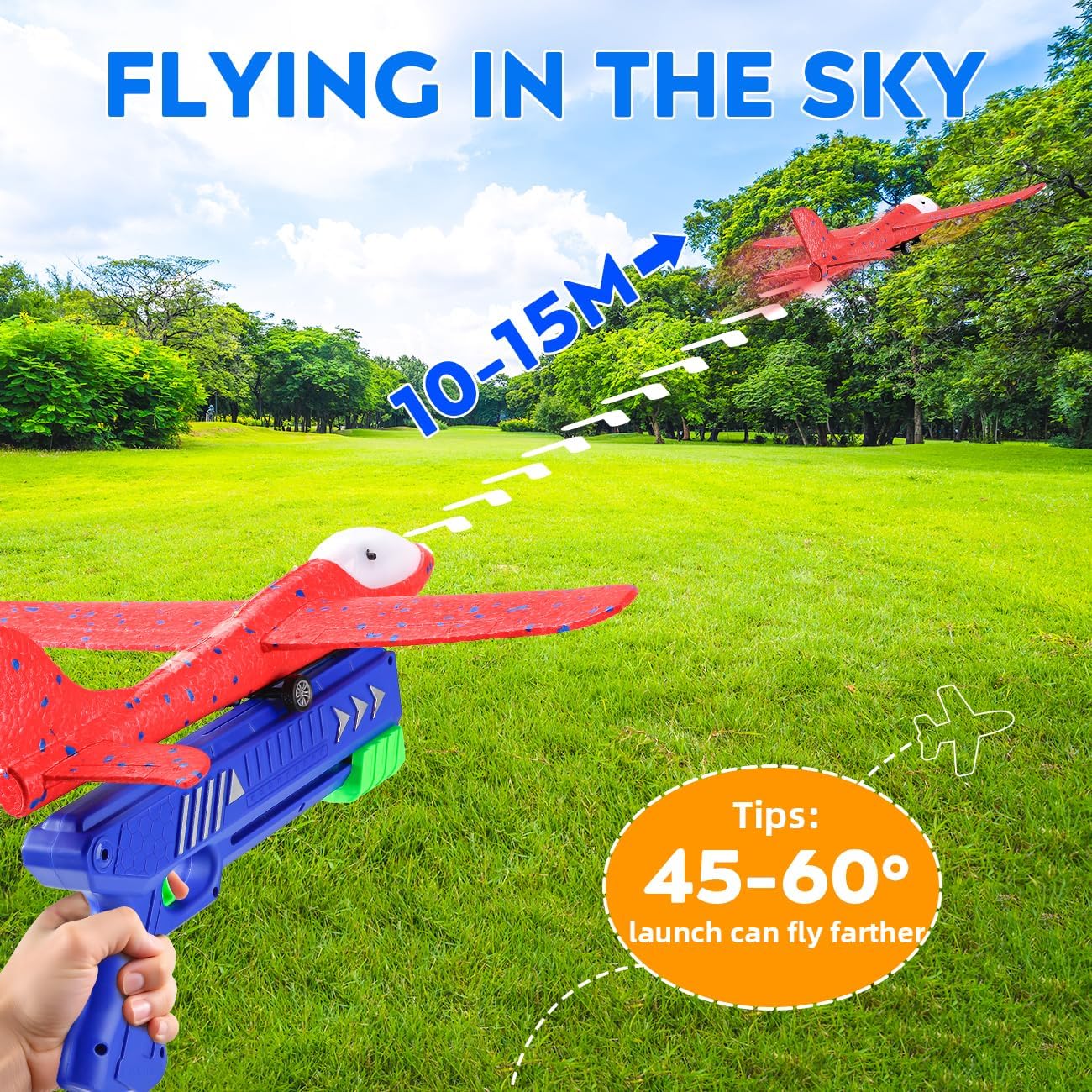 33-49 Ft Distance: As an garden games, the plane toy has an effective range of 49 ft. The children can compete to see whose plane goes the furthest and study the effect of the wind direction and angle on flight distance.