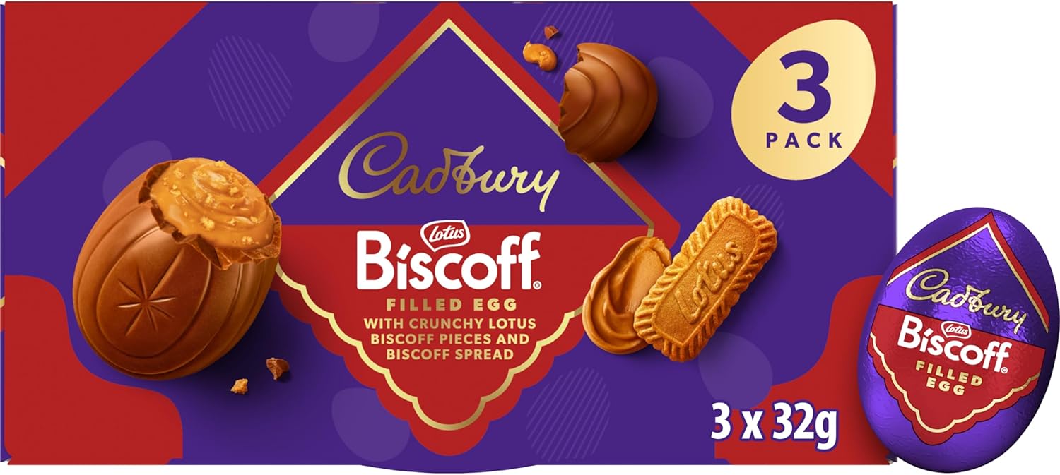 Cadbury Dairy Milk Biscoff Filled Chocolate Egg, Filled With Crunchy Lotus Pieces & Biscoff Spread, Easter Gift, Multipack of 3 x 32 g Eggs (Pack of 1)