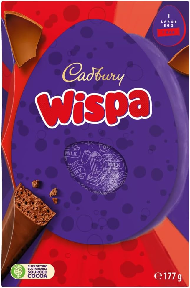 INCLUDES ONE WISPA BAR: Comes with a Cadbury Wispa bar featuring aerated milk chocolate for a light bubbly melt-in-the-mouth experience