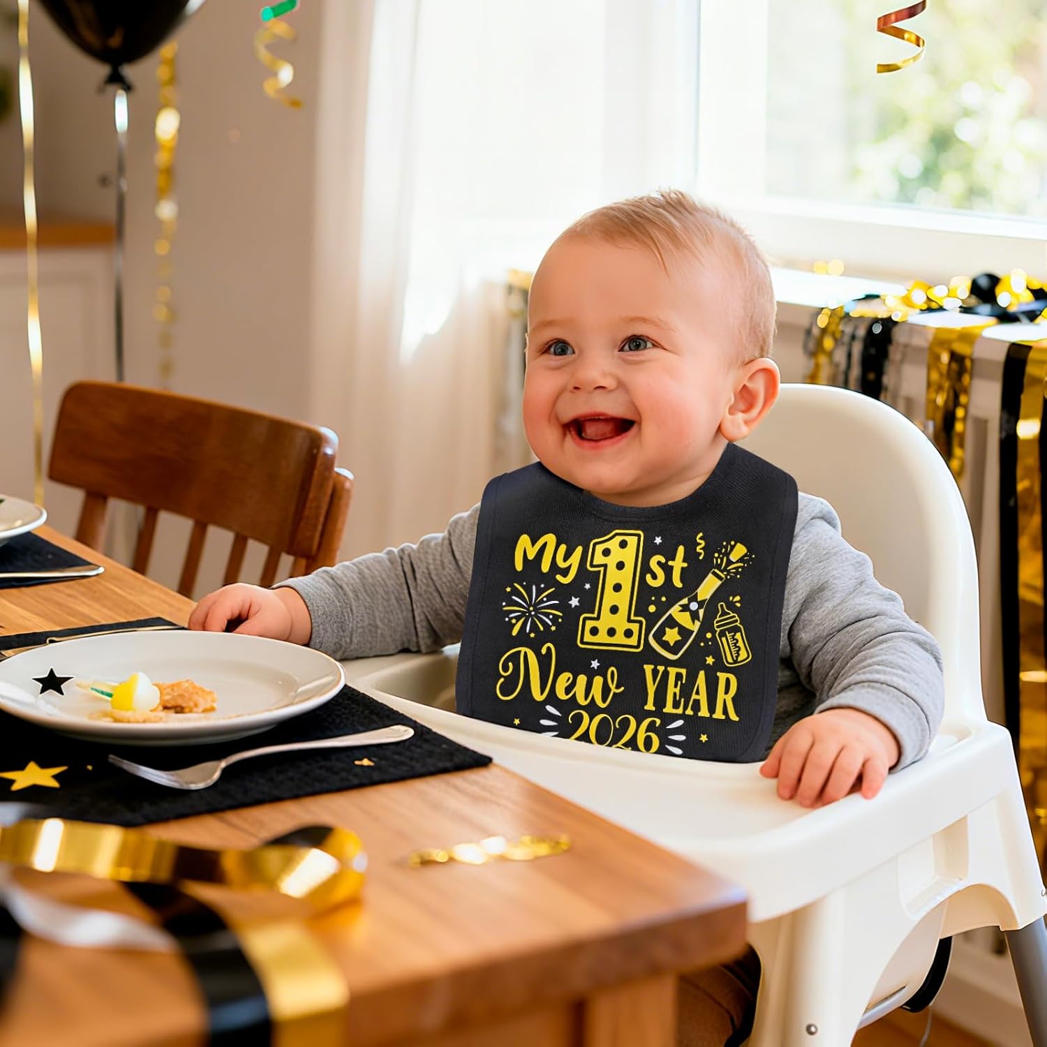 Black Gold My 1st New Year Bib – New Year’s Eve Party Accessories for Babies