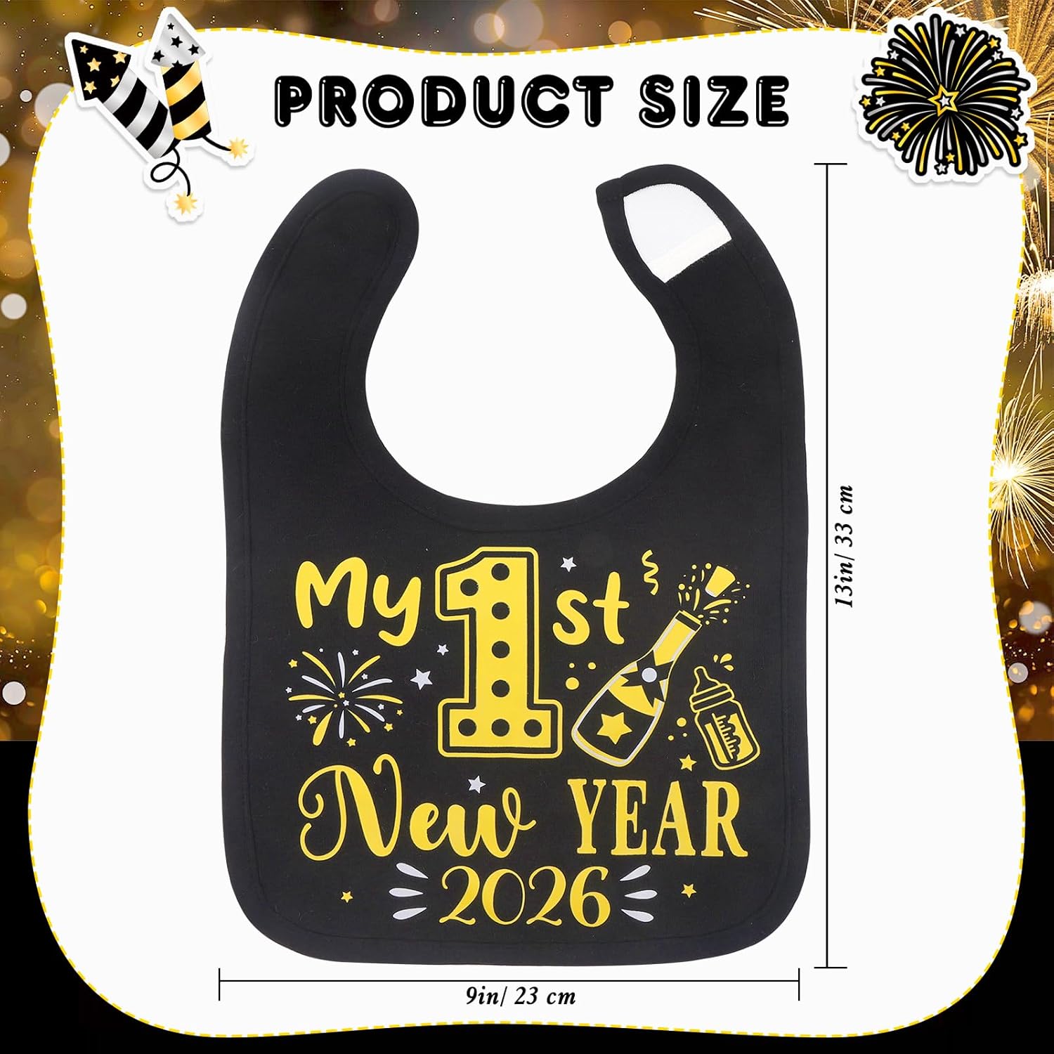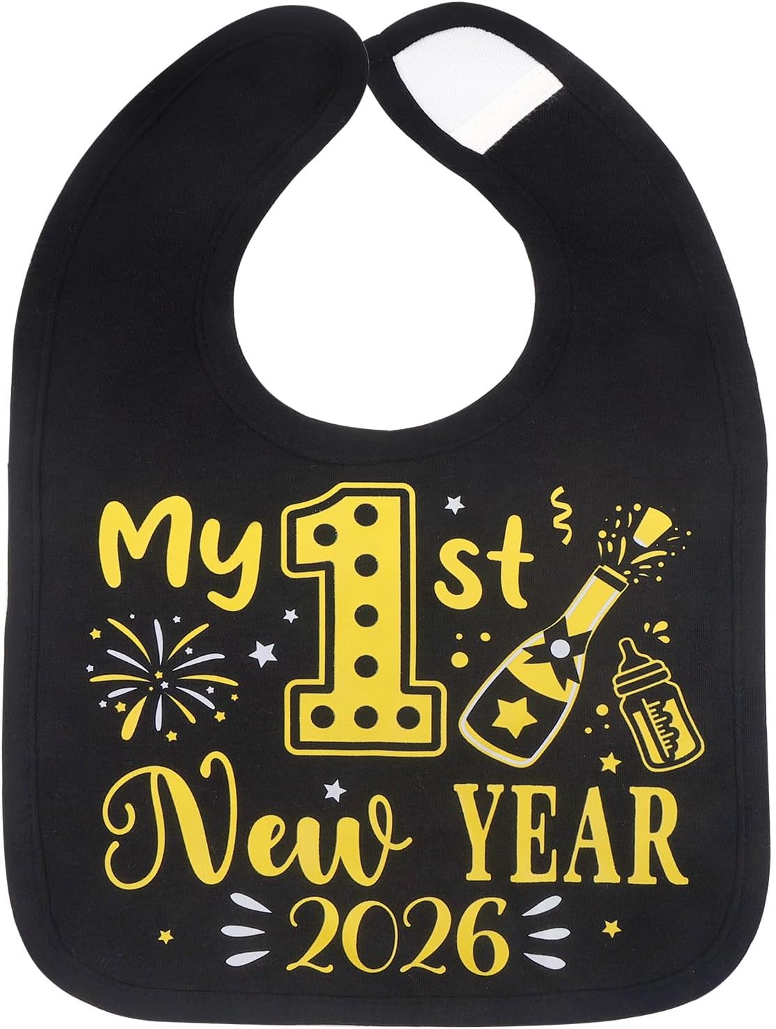 【My 1st New Year 2026!】Celebrate your baby’s first New Year in style with our elegant Black Gold My 1st New Year Bib 2026. This charming bib is the perfect accessory to mark this special milestone, combining practicality with festive flair. Crafted in a sophisticated black and gold color scheme, it features the playful message “My 1st New Year 2026” intertwined with delightful New Year-themed elements.