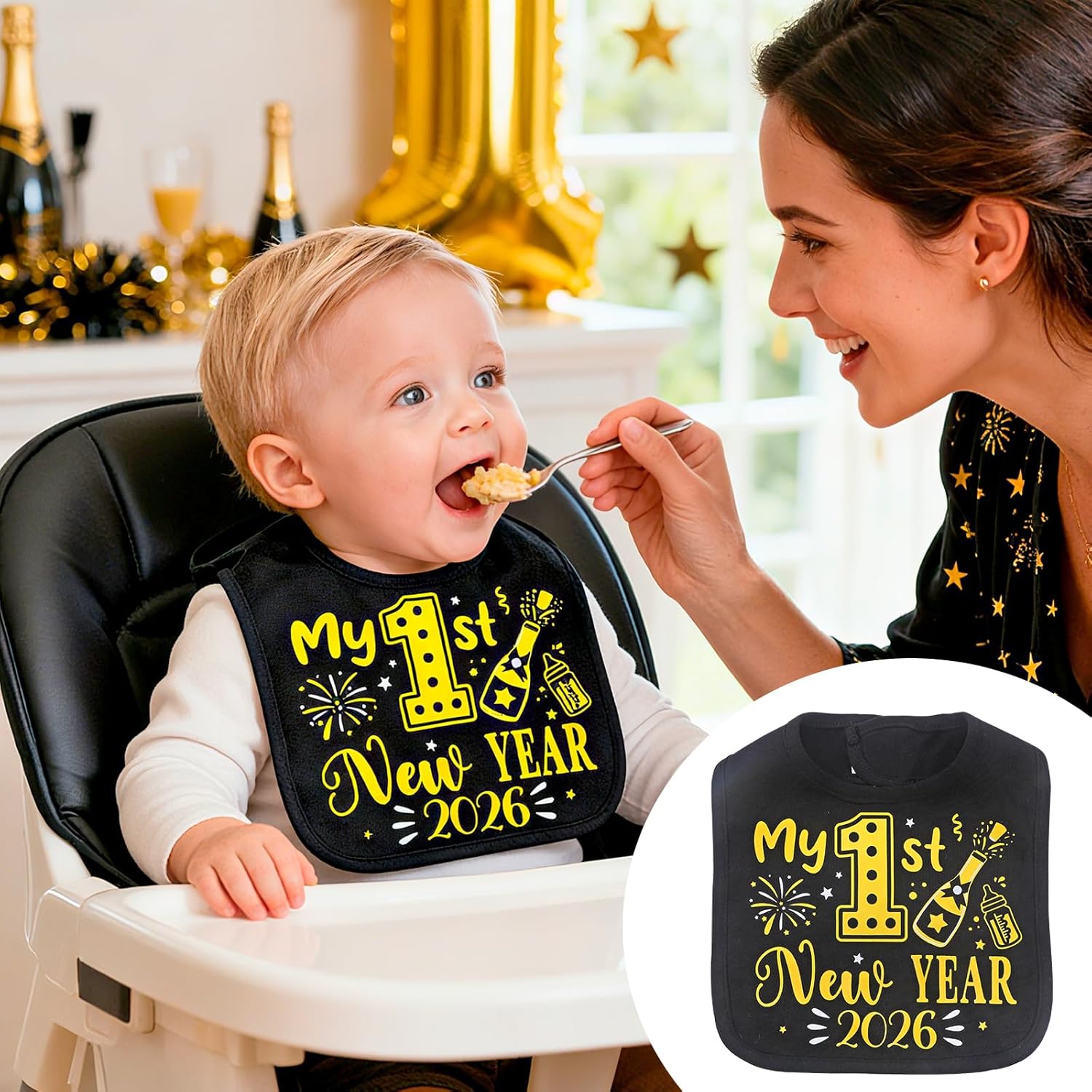 Be the first to review “DPKOW Black Gold My 1st New Year Bib 2026 New Years Eve Party Accessories, Baby’s First Christmas Holiday Gifts Unisex, 2026 Girls Boys 1st Outfit Costume Accessories”