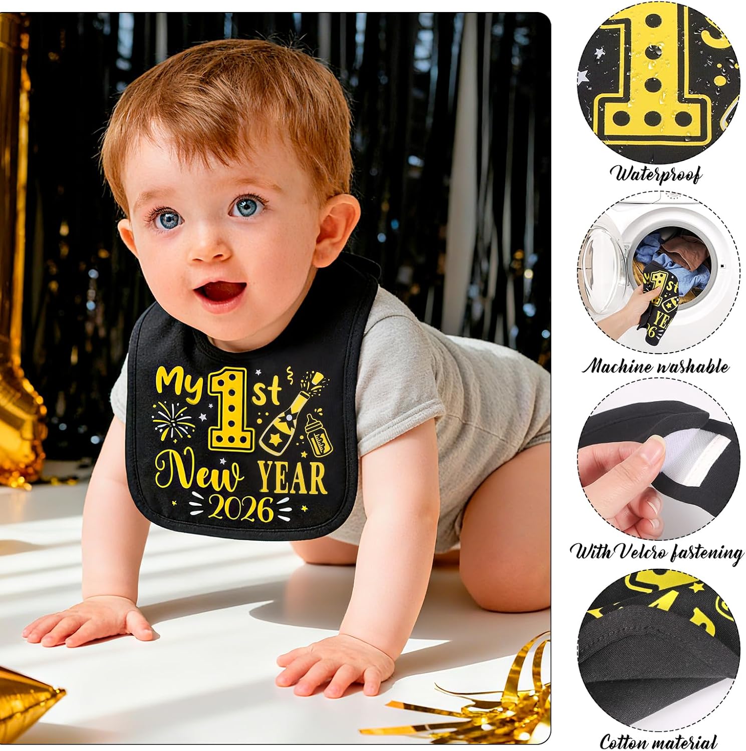 【Ideal First New Year Accessory】As a quintessential “first New Year” item, this bib is perfect for capturing memorable photos of your baby during the holiday season. It also makes a delightful addition to New Year’s Eve gift boxes, serving as a keepsake that parents can cherish for years to come. This unisex bib is the perfect baby’s new years eve outfit accessories, my first christmas baby boy girl outfit accessories.
