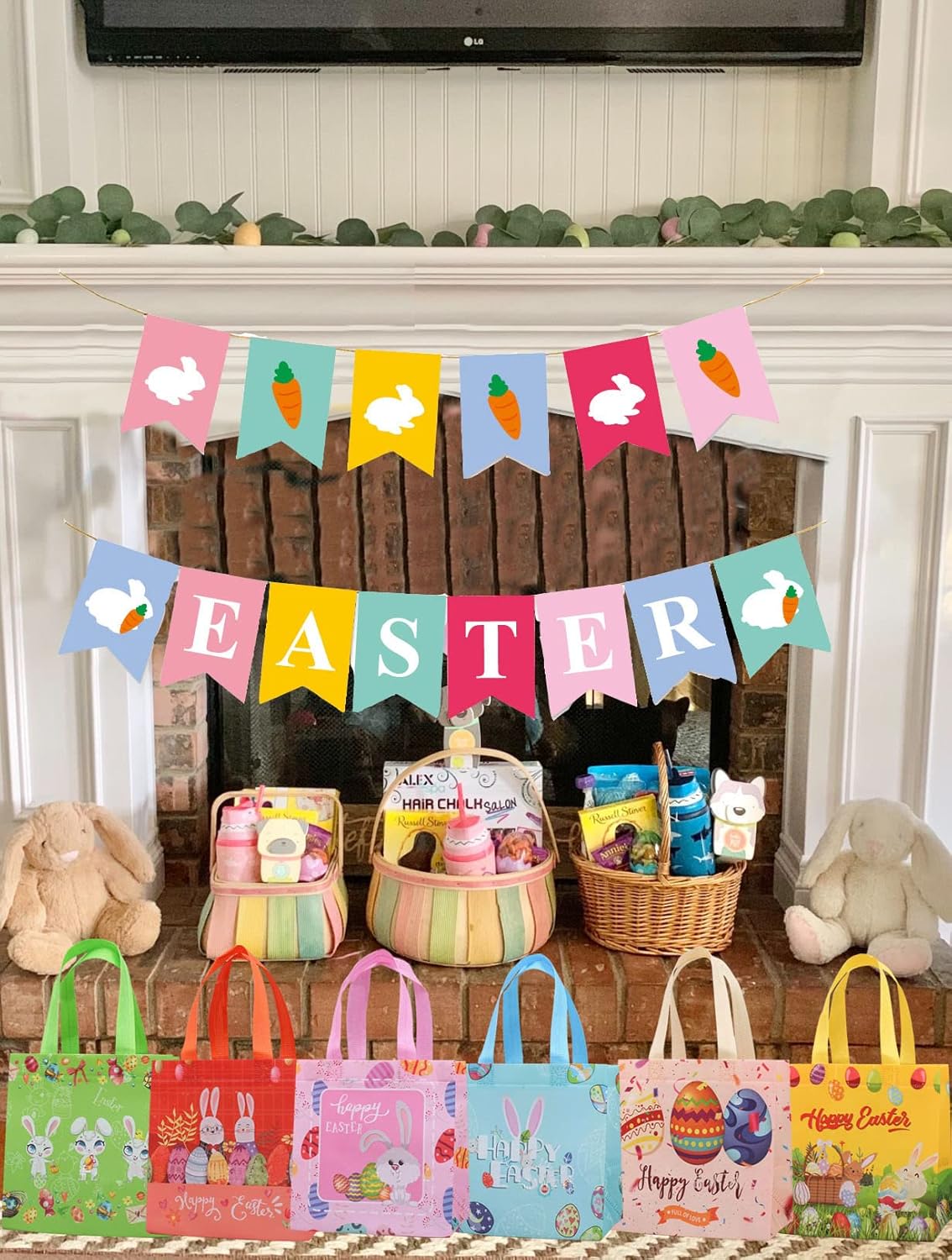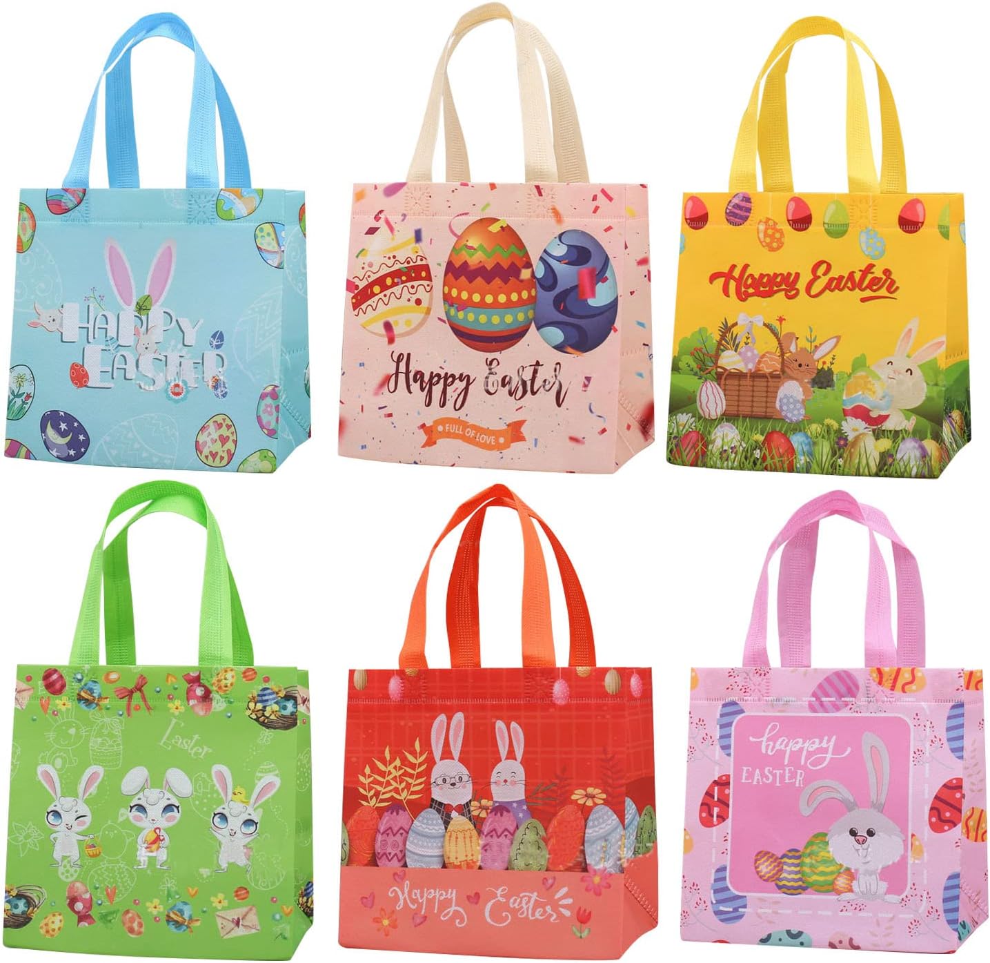 Jwssor Easter Bags,6 packs Reusable Tote Bags,Treat Bags with Handle,Non-woven Bags for Easter Party