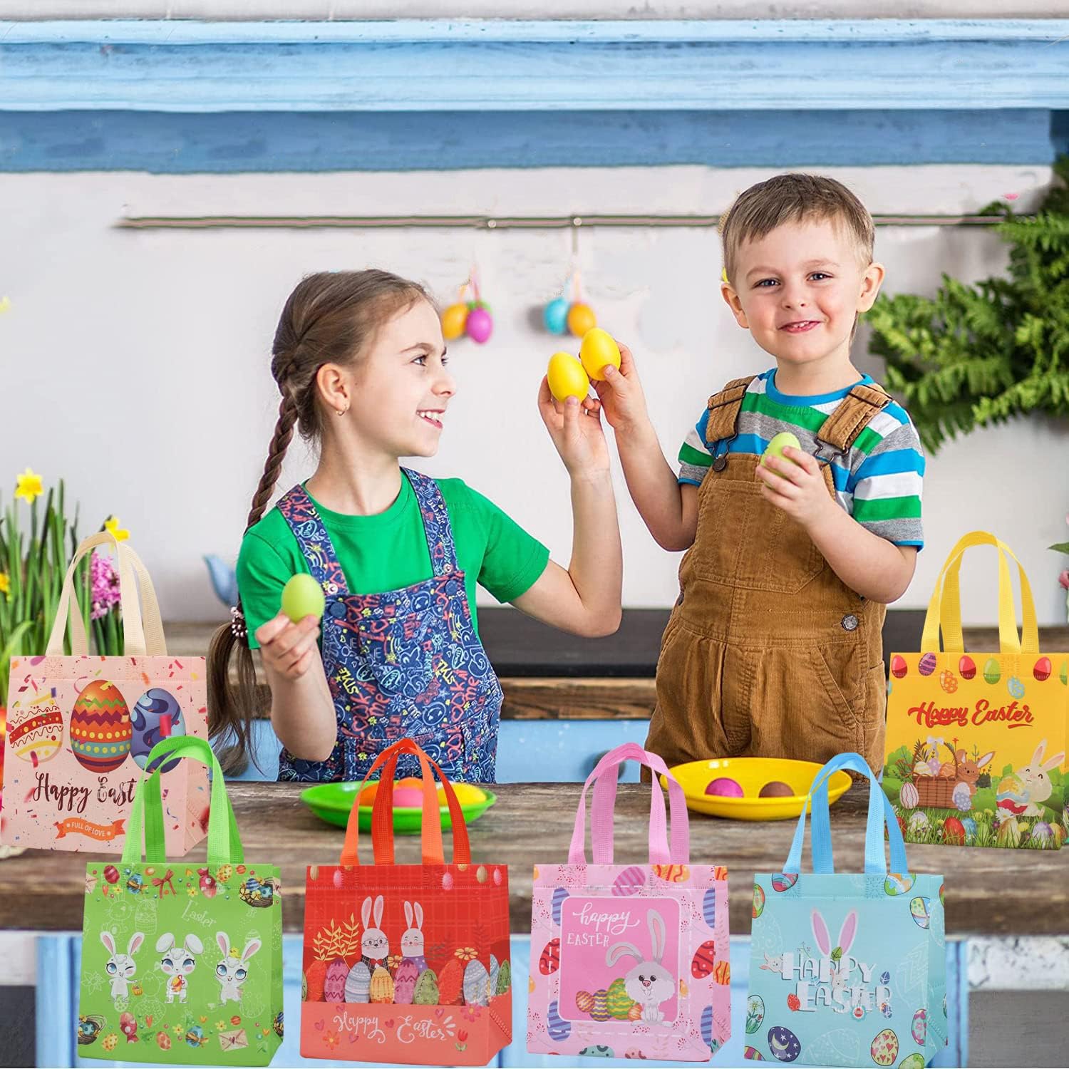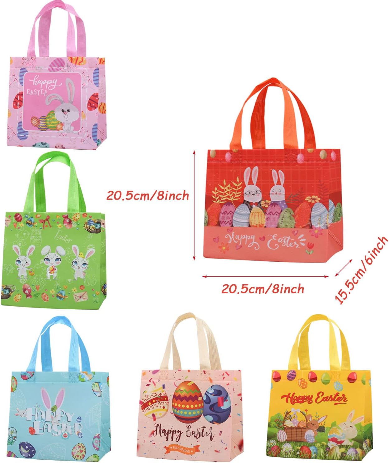 Easter Bags,6 packs Reusable Tote Bags,Treat Bags with Handle,Non-woven Bags for Easter Party