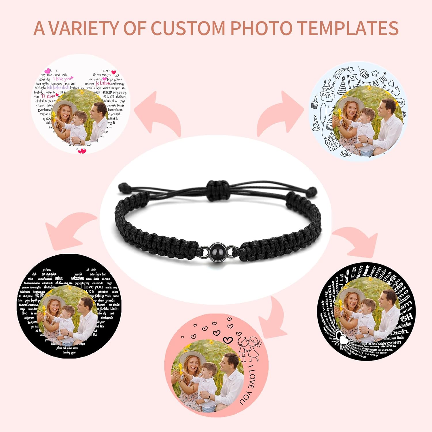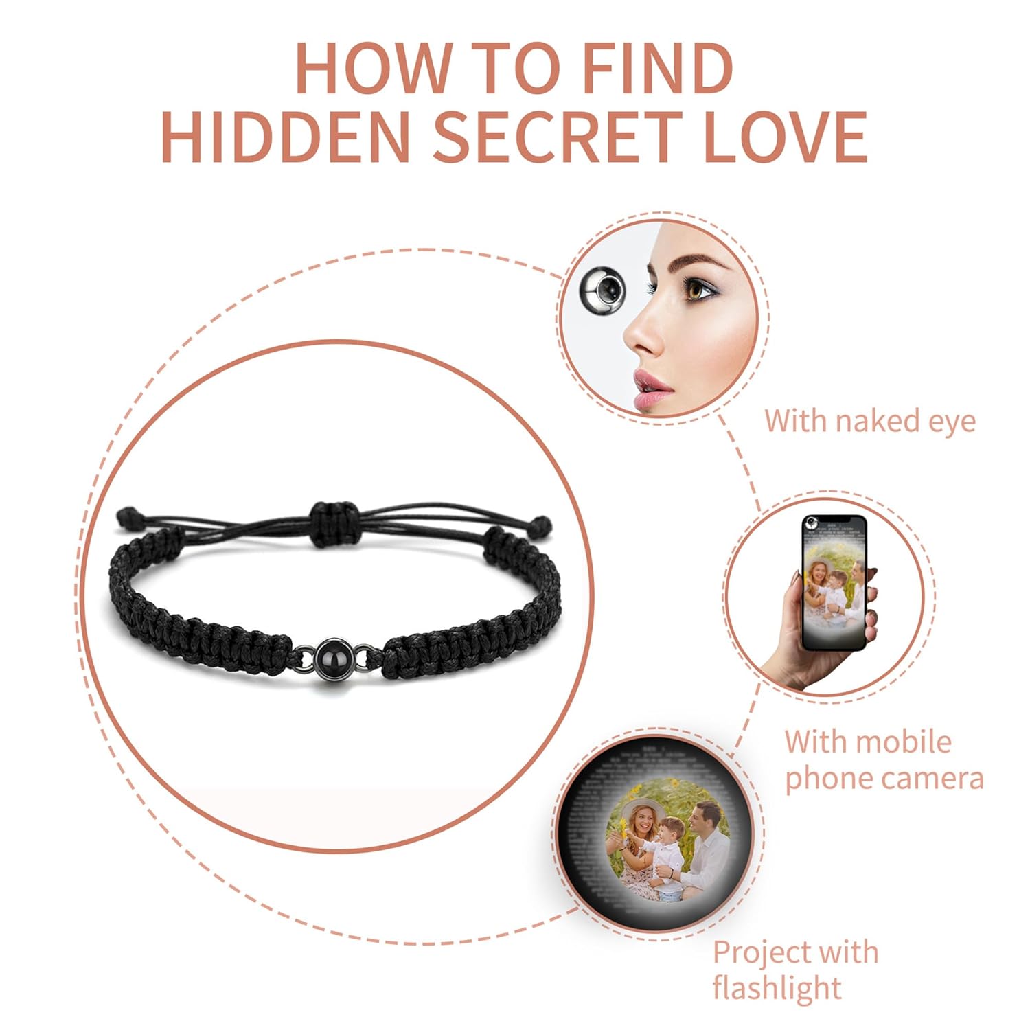 ✨Customize Projection Bracelet: A customized bracelet for anything you love in life. Carry your photo hidden in the love stone. With a see-through lens, you can see the photo inside or you can shine a light through it and project your photo on a wall.