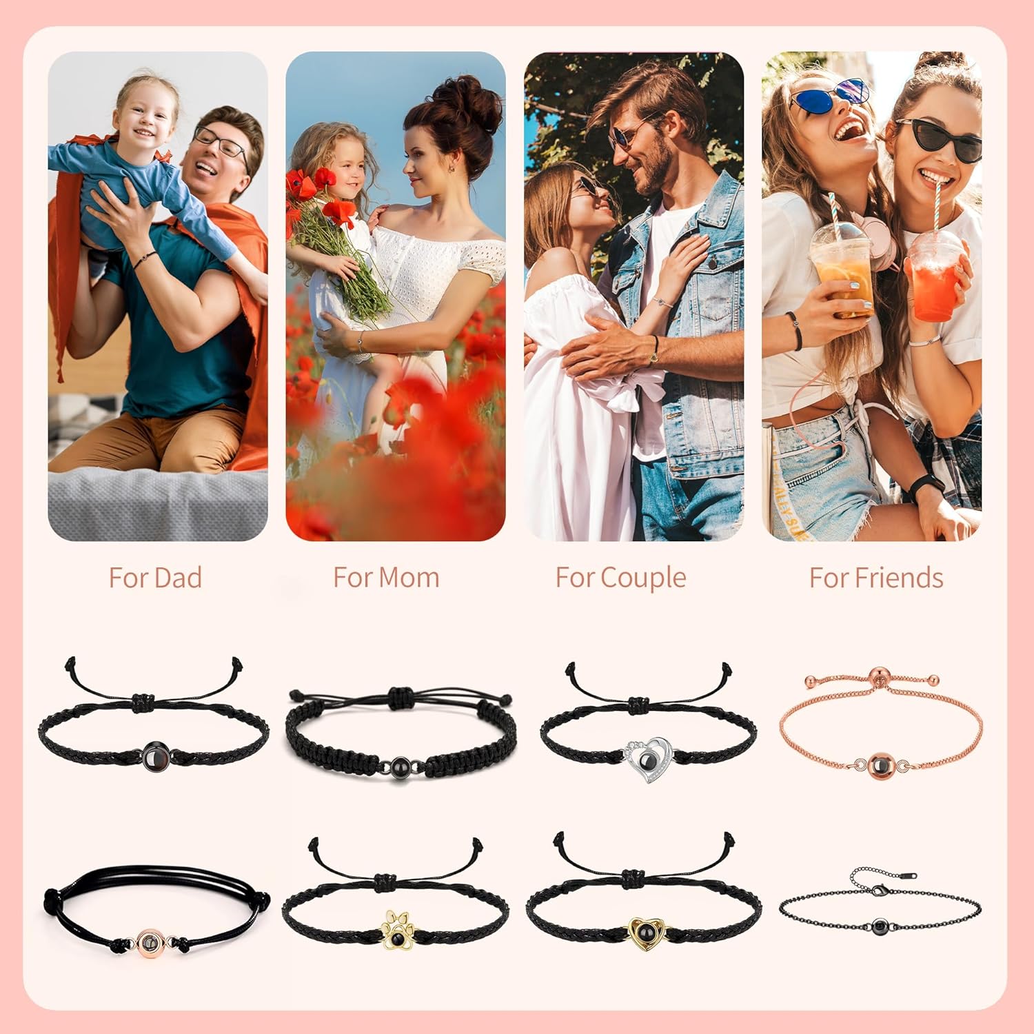 💕Material&Gift Package: This picture bracelet made of premium material and projection stone, not fade, non-sensitive, harmlessful for your skin. All orders are nicely packaged by jewelry boxes and enclosed in bubble packaging bags during transit; you can also upgrade more exquisite gift boxs for him/her.