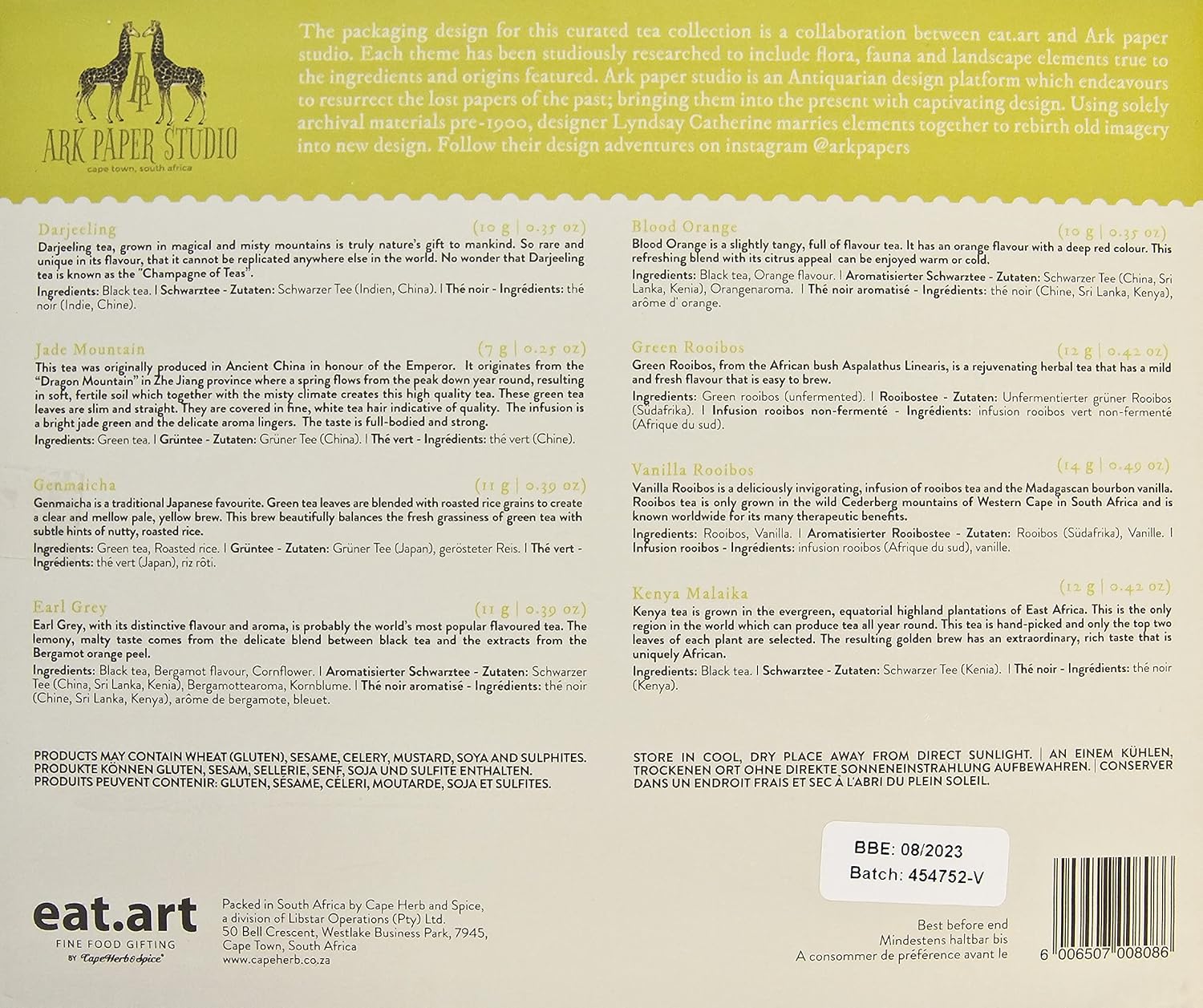 We pride ourselves on our transparent supply journey and the quality of our carefully sourced ingredients and collaborate with local South African artists to create our signature packaging designs.