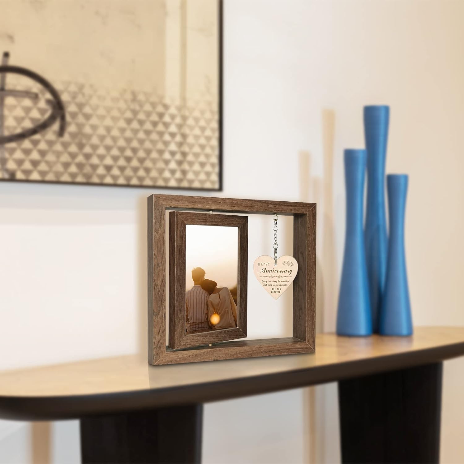 EYITUPC Happy Anniversary Photo Frame Gifts for Her, Rustic Wood Floating Anniversary Photo Frame Gifts for Him, Display Two 4×6 Inch