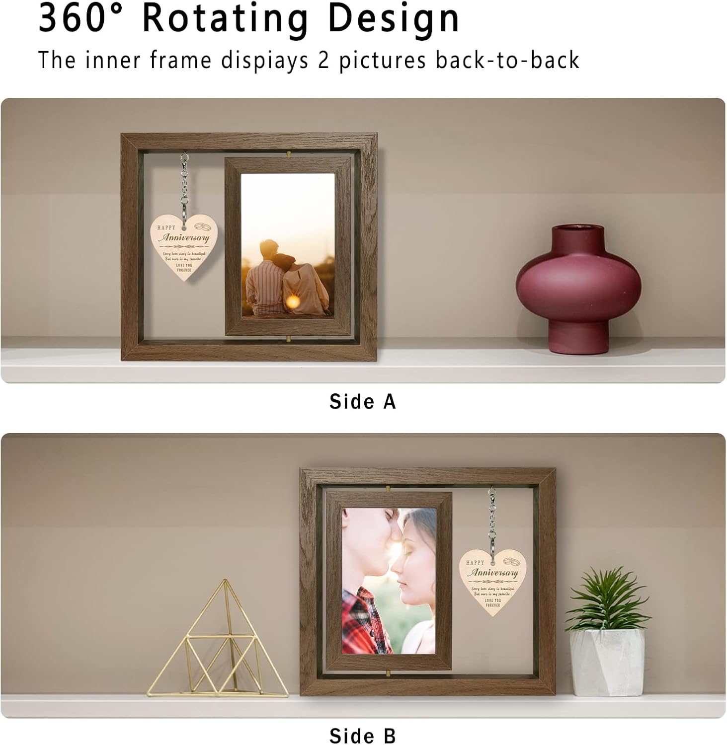 Sturdy Wood Material: 360 Degrees rotating floating photo frames are made of lightweight wood with a unique design vintage wood texture finish and real glass cover, making quality happy anniversary gifts for her that enlightens & inspires life