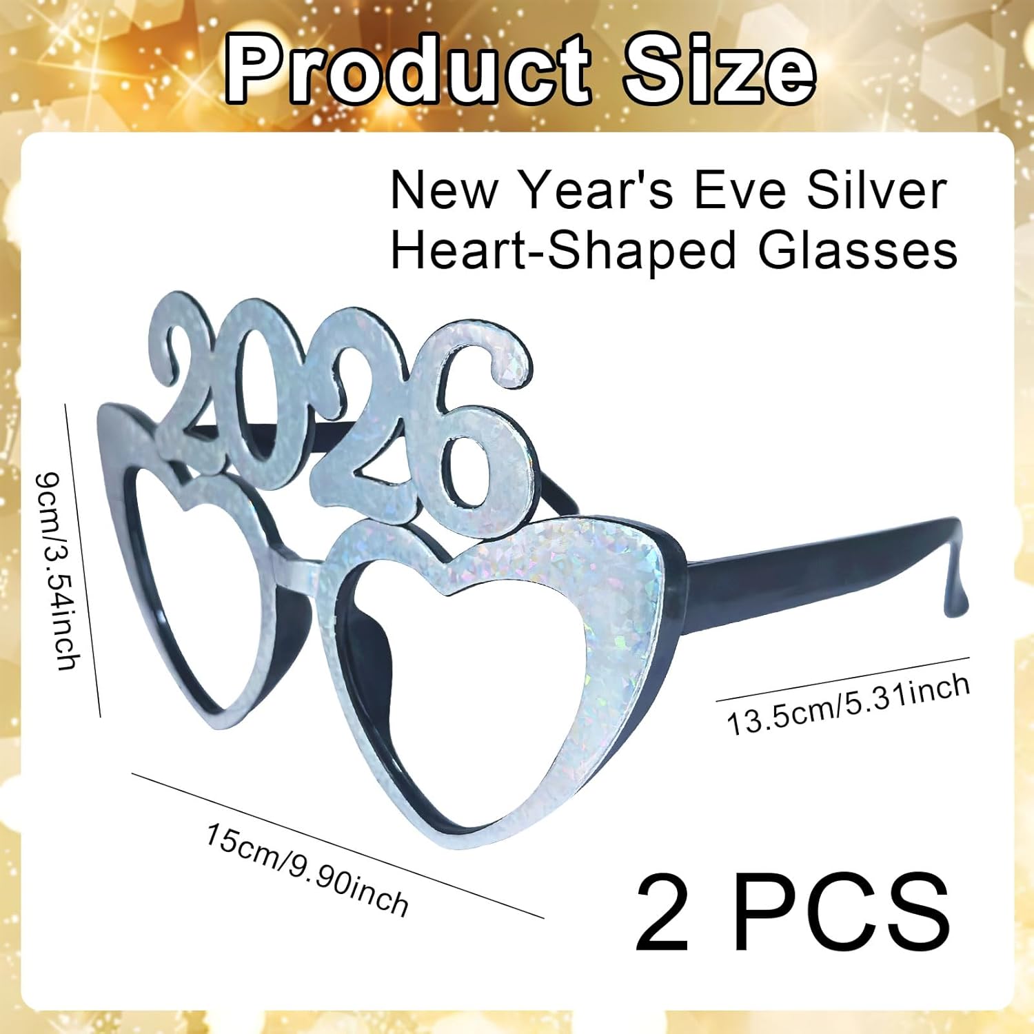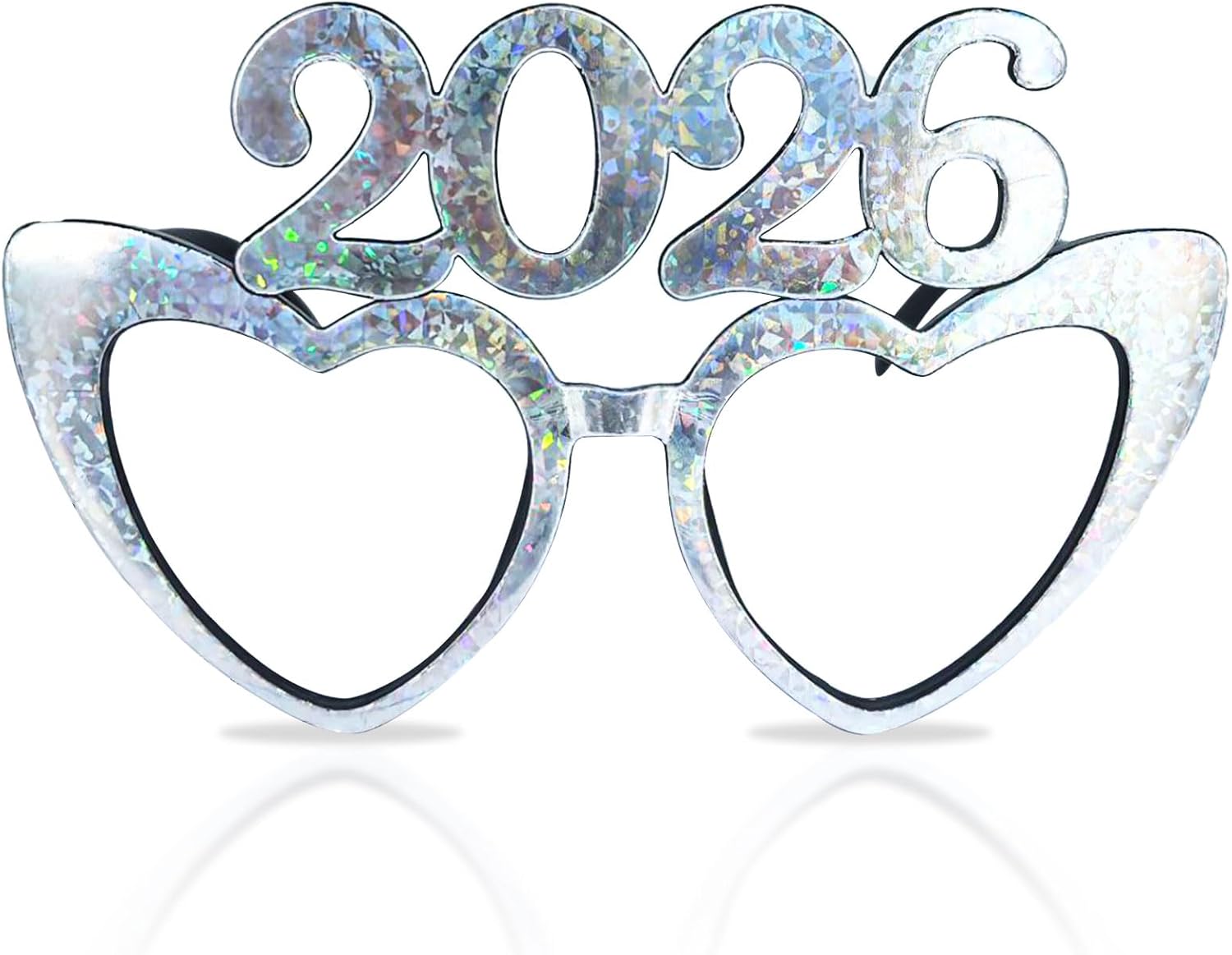 Fogcosy 2026 Happy New Year Decorations Glasses – 2 Pcs Silver Glitter Love Heart Party Glasses, Novelty Happy New Year Glasses Decorations for Kids Adults Costume Photo Props