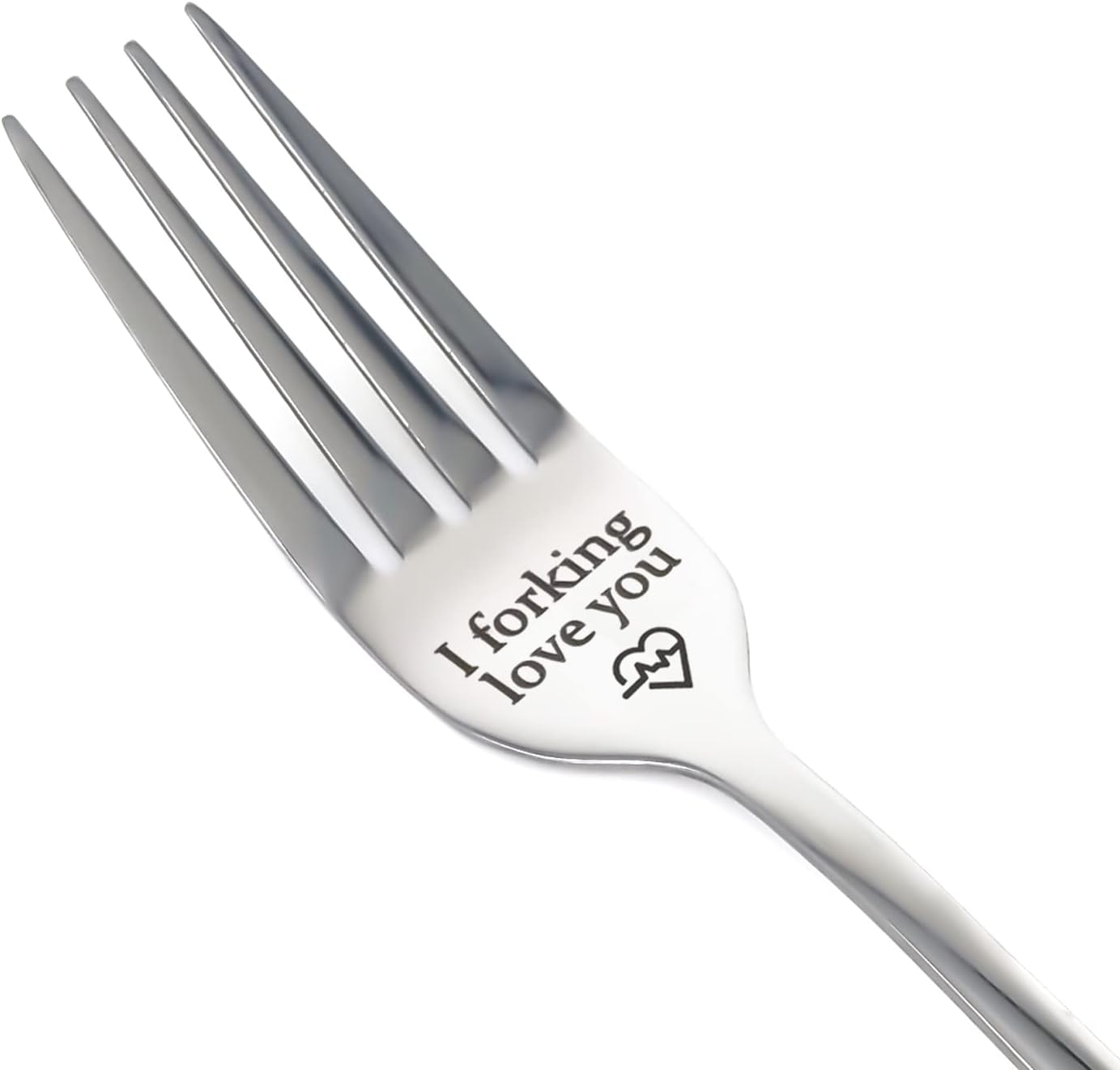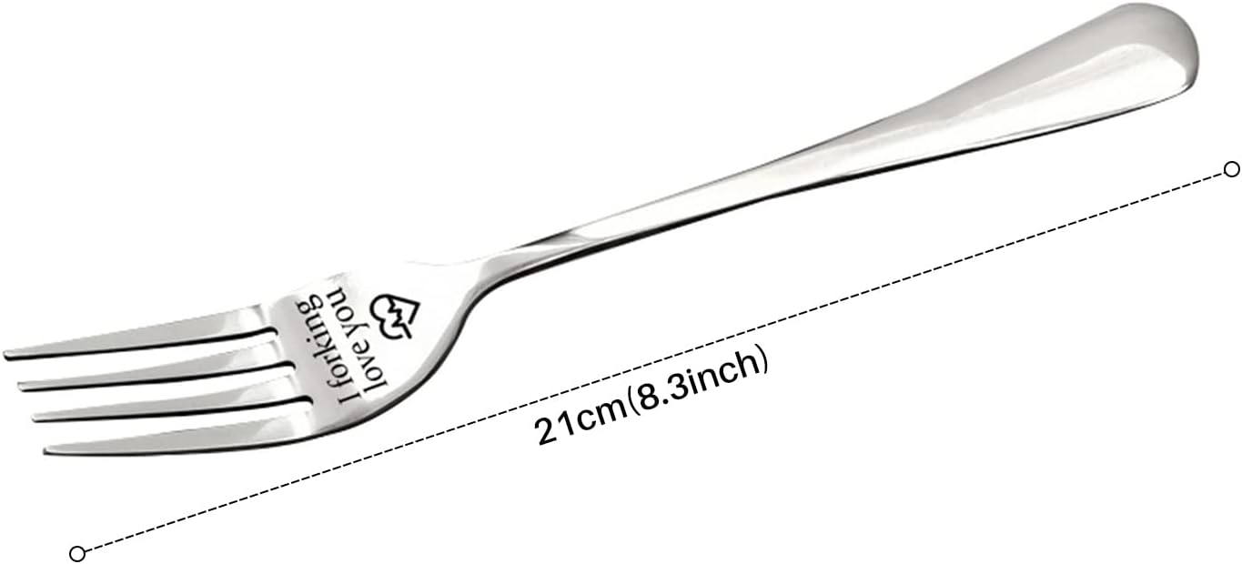 FORKING LOVE YOU FORK: This quality stainless steel fork is engraved with the words”I forking love you”. Clean and elegant,with a smooth finish and mirror polish to keep these forks shining, the unique engraved fork will enhance your dining experience.