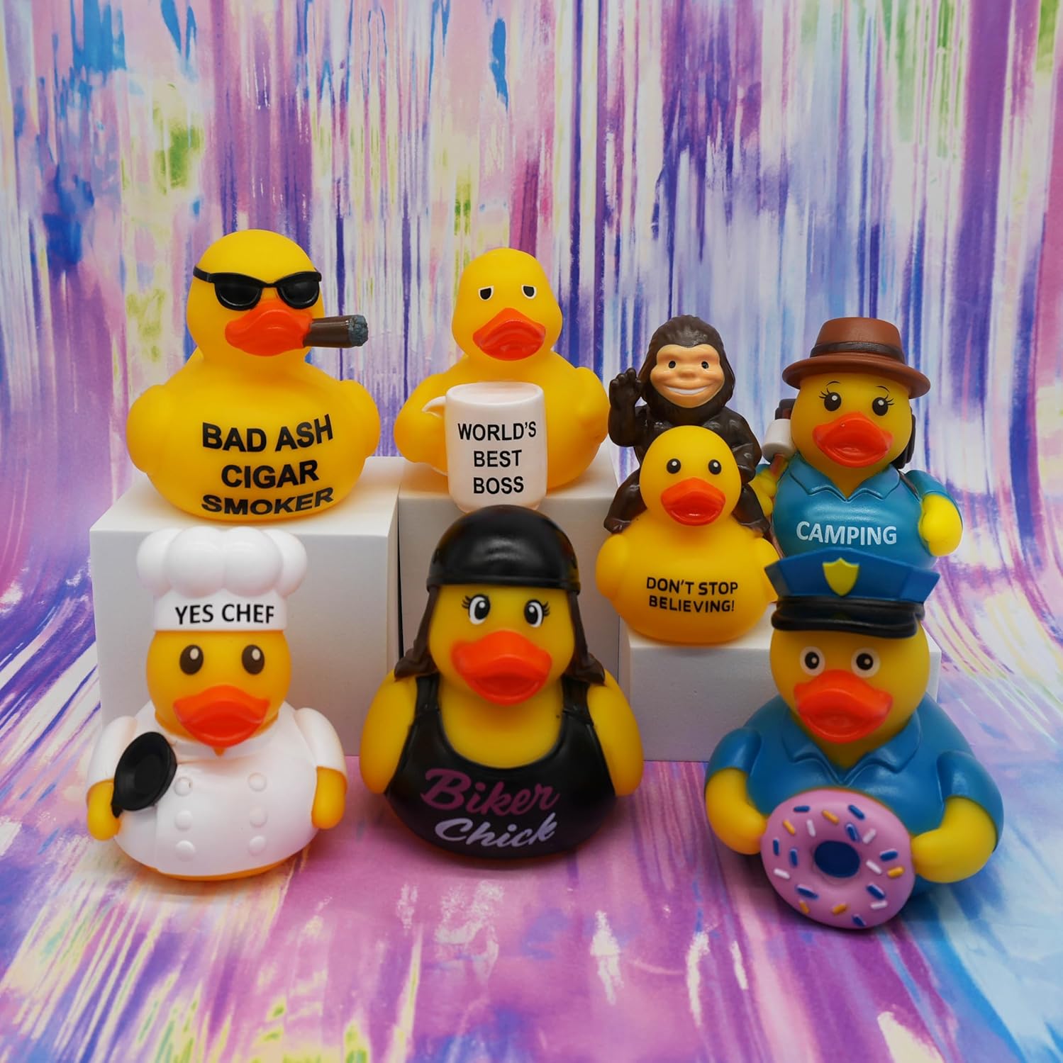 Make bath time or desk décor more fun with this GOOFBALLS novelty rubber duck that adds a quirky twist to a classic favorite. Designed with playful details and durable material, this duck is great for display, collecting, or lighthearted gifts. Perfect for themed parties, stocking stuffers, or simply brightening up a bathroom, it’s a conversation starter that appeals to both kids and adults. Whether floating in the tub, sitting on a shelf, or given as a gag gift, this novelty rubber duck brings humor and charm to any occasion.