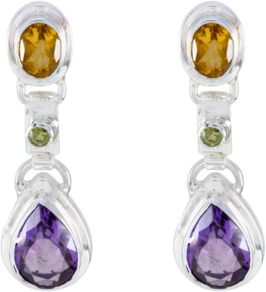 Genuine Gems Multi Faceted Multi Earrings – 925 Silver Earring Multi Multi Genuine Gems June Month Gemini Astrology Earring – now trending gift for halloween