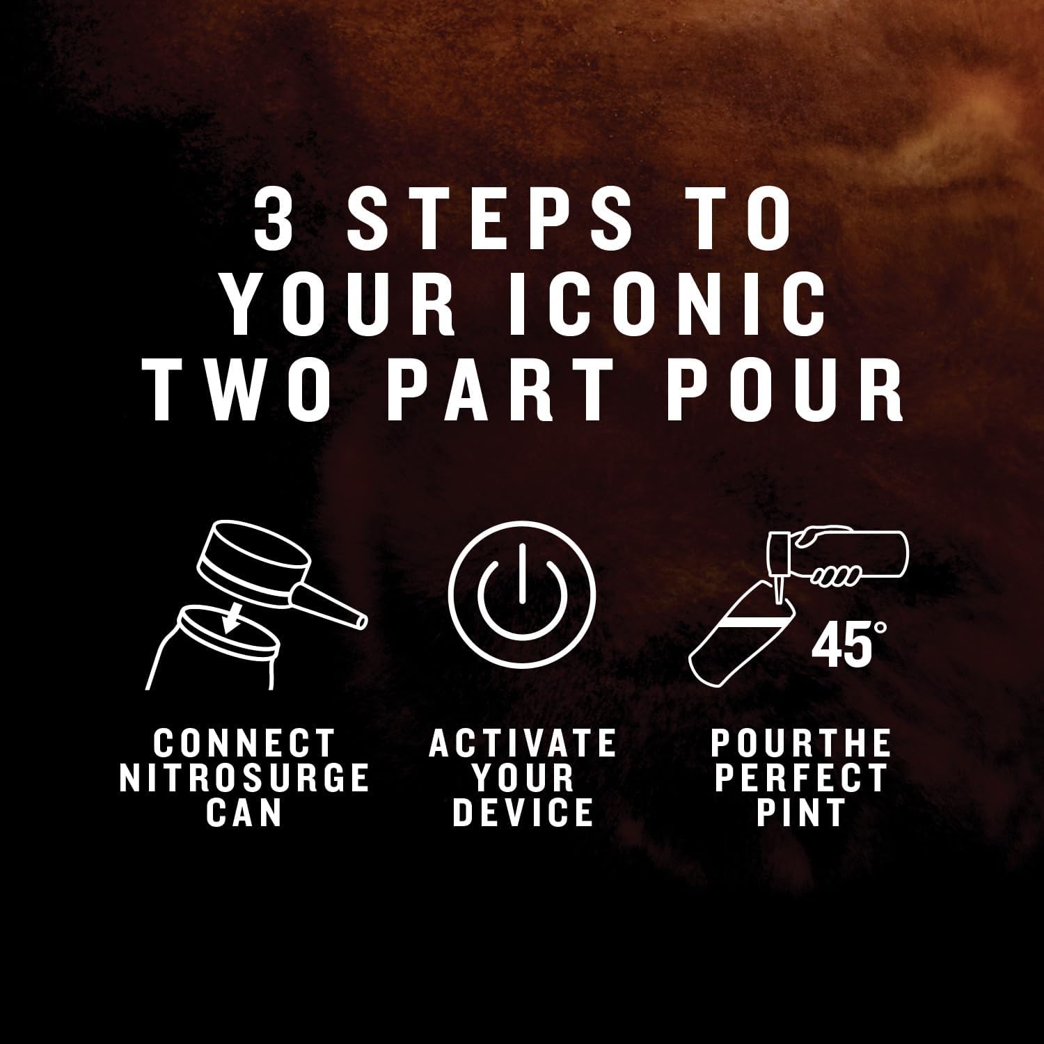ABOUT – Simple to use, Guinness NITROSURGE cans and the NITROSURGE Device* puts the craft of draught in your hands