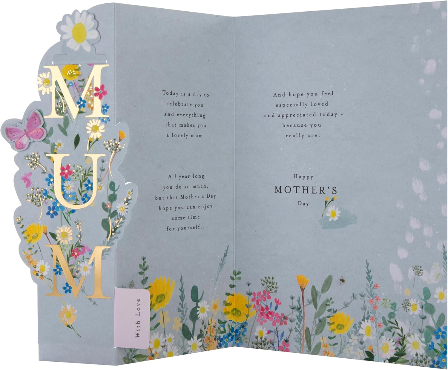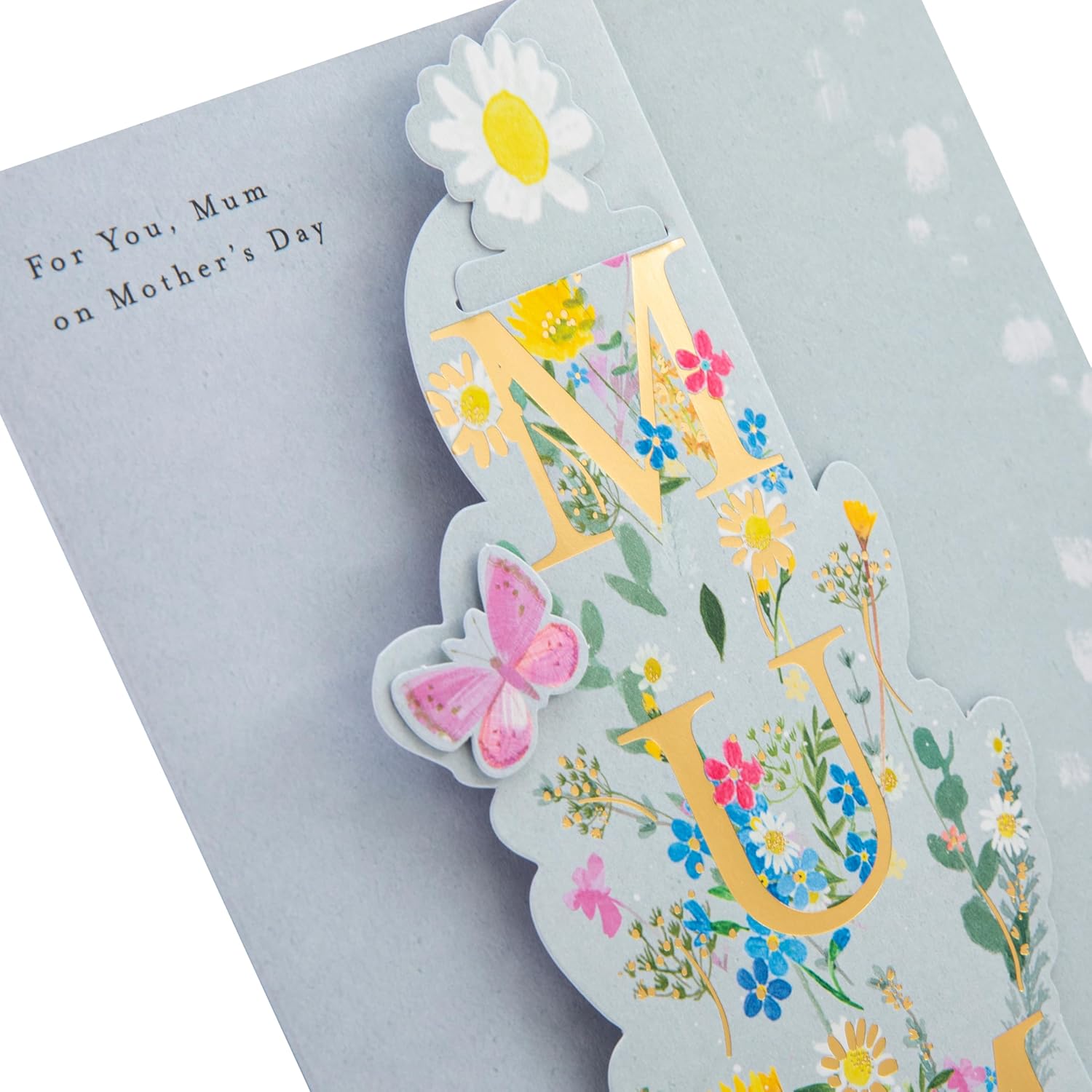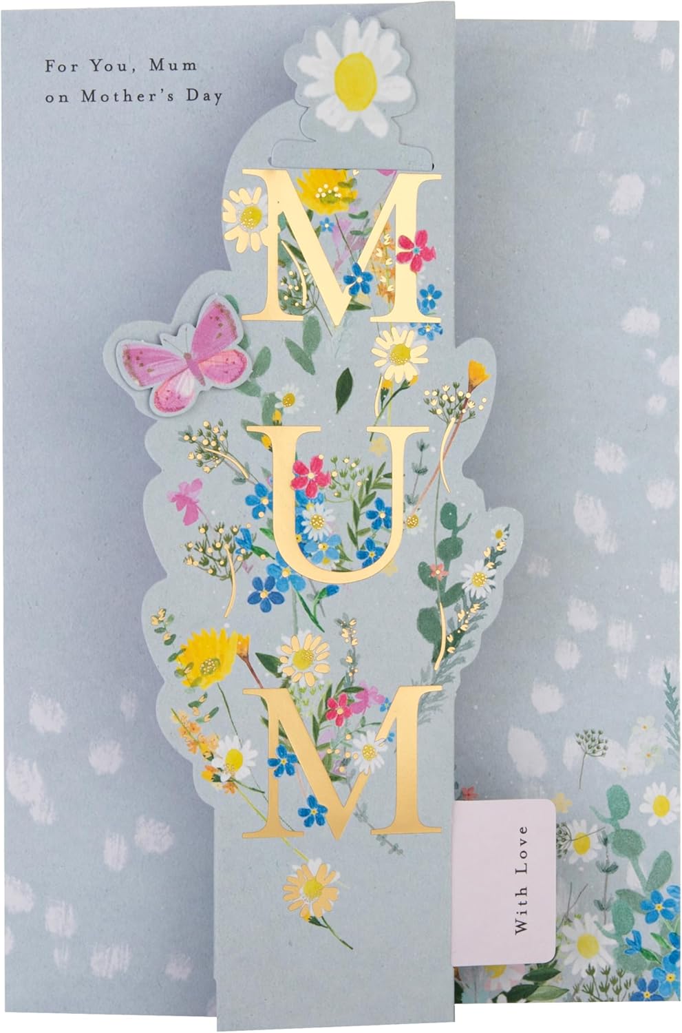 Hallmark Mum Mothers Day Card, with Bookmark Keepsake, Mothers Day Card for Mum, Florals, Butterfly, Gold, Blue, Pink