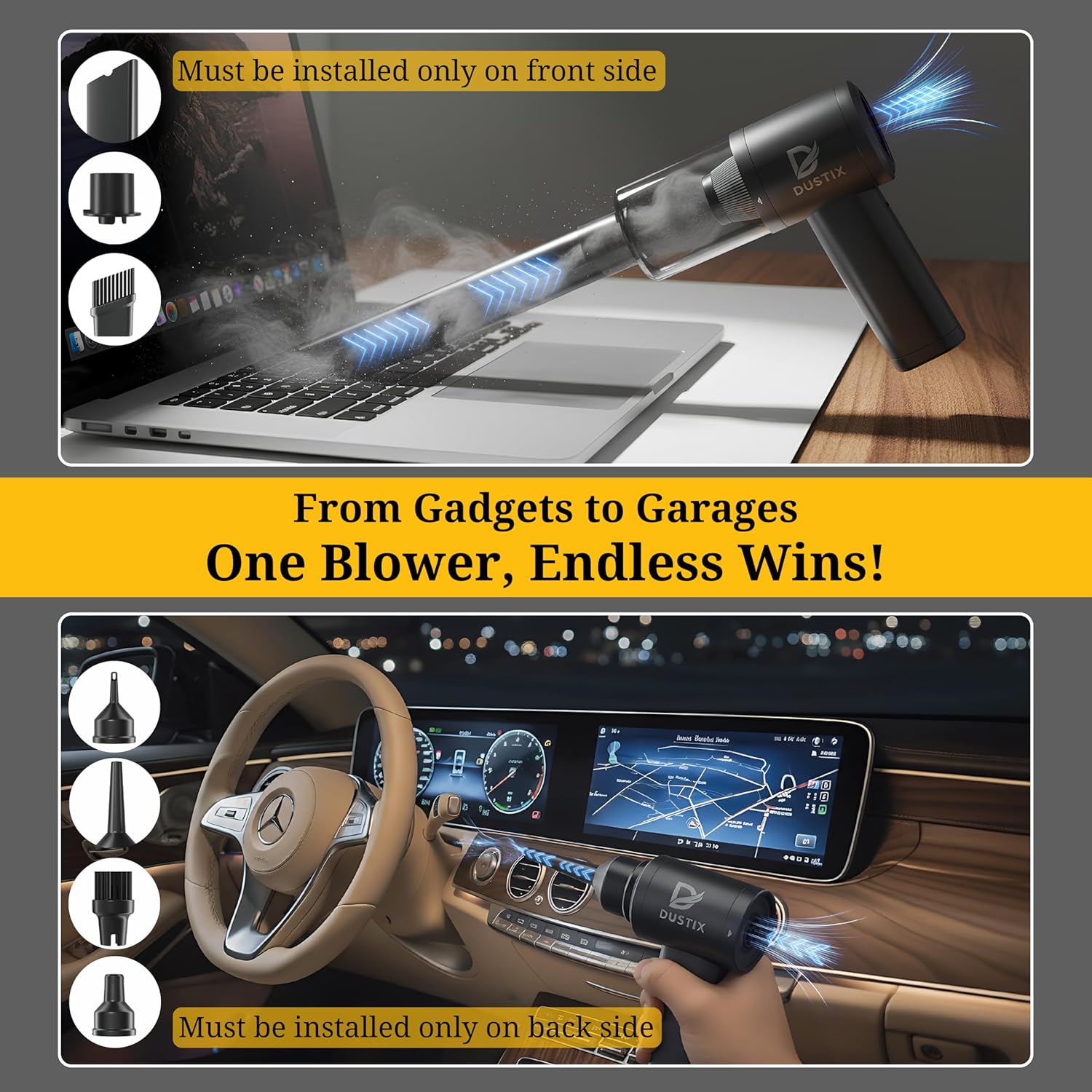 Accessory-Rich Kit: More than a vacuum small device – works as portable hoover, hoover handheld, handheld hoover cordless, mini vacuum, mini vacuum cleaner cordless, mini hoover cordless, hoover for car, handheld hoover for car, and air blower for inflating or deflating items.