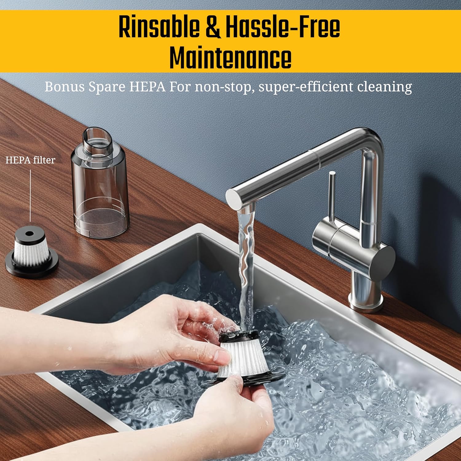 Washable HEPA Filter: Includes washable HEPA filtration and accessories for every scenario: keyboard vacuum, small hoover for car, mini car hoover, mini vacuum cleaner for car, small hoover cordless, hoover small, small hoover, small hand held vacuum cleaner, and versatile car accessory cleaning.