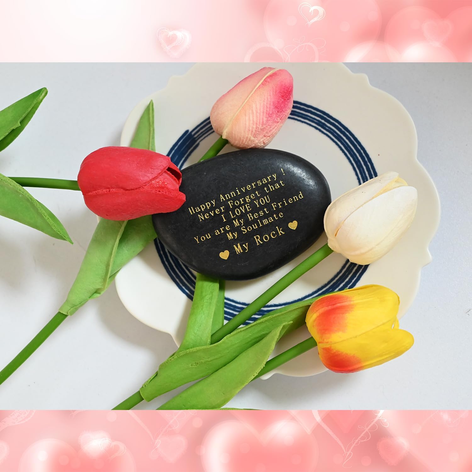 Happy Anniversary Rock Romantic Gifts for Her, Engraved Rock Happy Birthday Gifts I Love You Gifts You are My Rock Gifts Decorative Stones with Red Velvet Bag