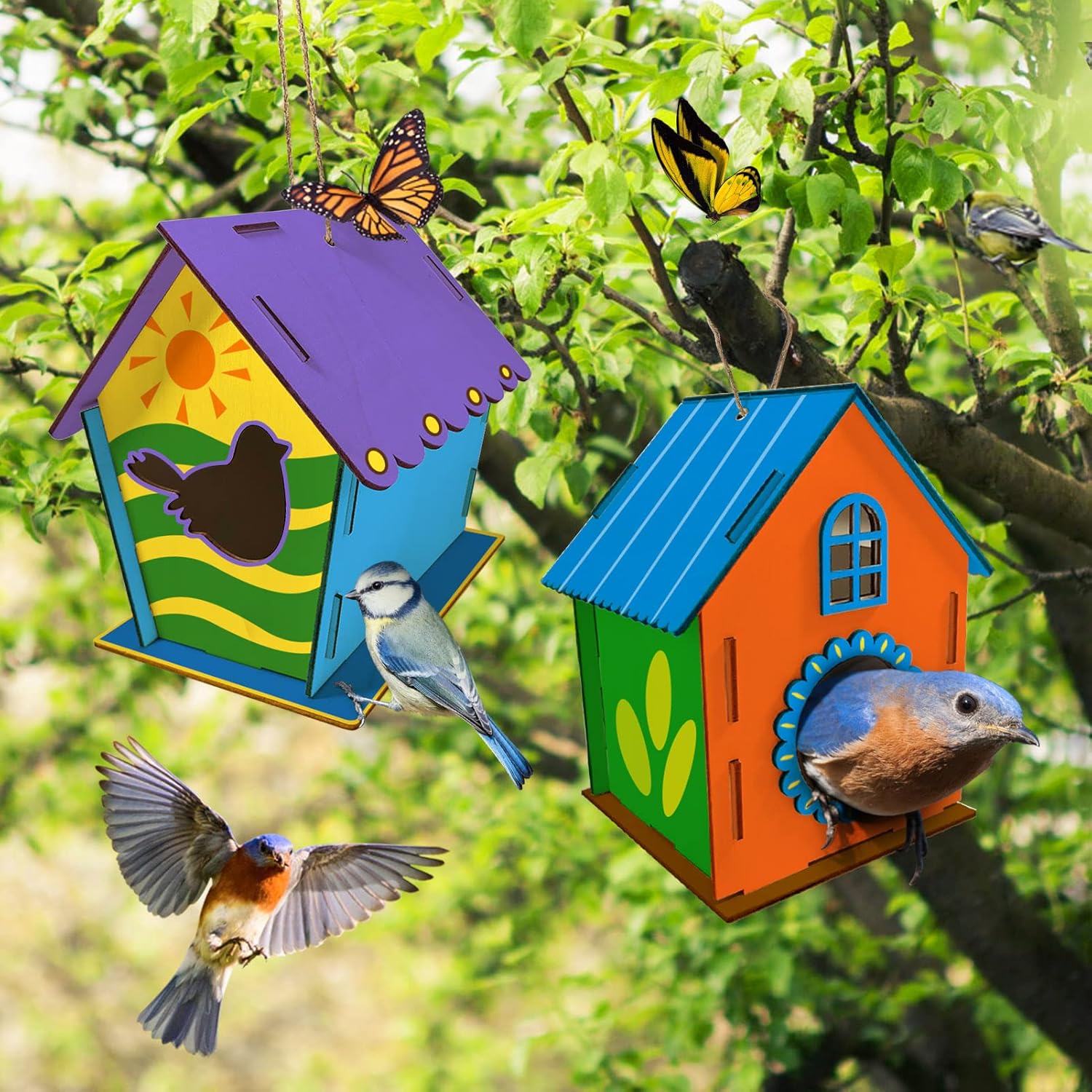 NON-TOXIC & SAFE DIY TOYS – Our wooden boards are made of thickening plywood, and water-based non-toxic painting (easy to color) & easy-to-clean paintbrushes, makes the birdhouse crafts kit safe and harmless to kids; Children should be accompanied by adults to prevent swallowing the glue and paint.