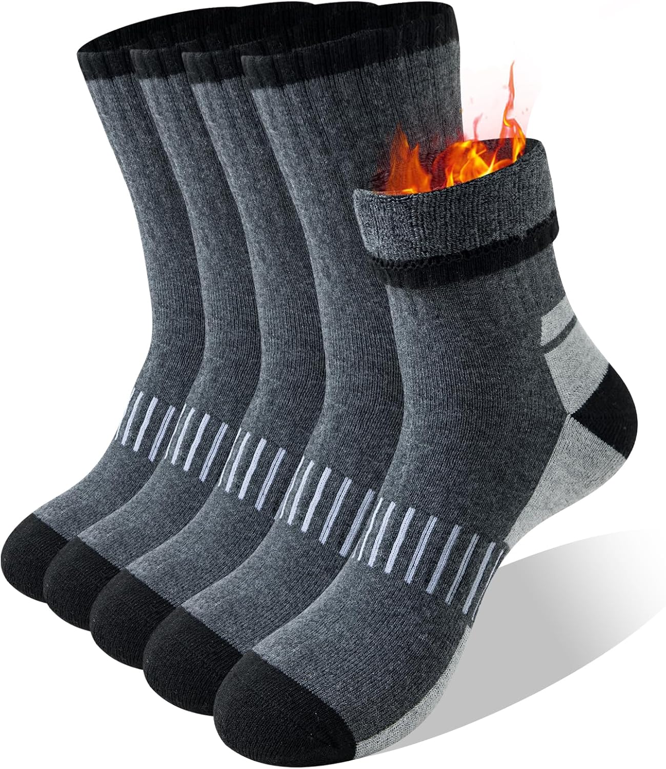 Hocerlu Thermal Socks for Men, 5 Pairs Thick Cushioning Winter Outdoor Sports Warm Boot Socks for Work Walking Hiking, Daily Wear or Gifts, UK 6-11.