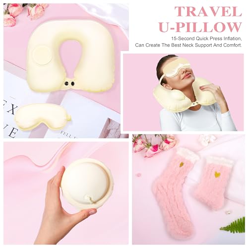 Travel-Friendly & Cozy Birthday Gifts for Women: Experience comfort on-the-go with the ultralight inflatable travel pillow and wrap up in our luxury plush flannel blanket. These practical yet luxurious items make our birthday gift basket for women a perfect blend of relaxation and portability.