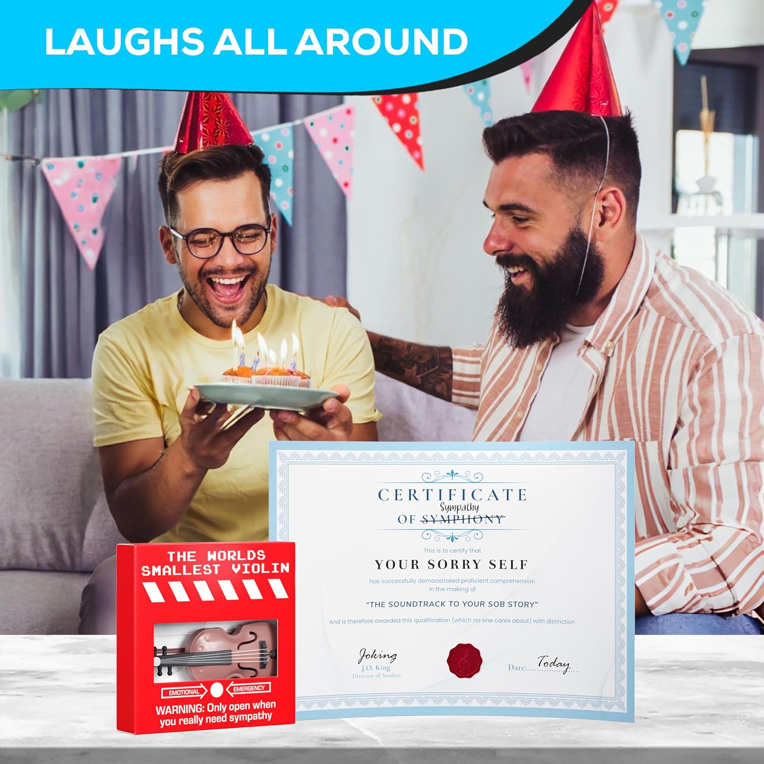Fun, Memorable, and Heartwarming: The World’s Smallest Violin is a quirky and memorable way to acknowledge life’s minor grievances with a smile. Perfect for sharing a light-hearted moment with friends and family, it makes a thoughtful and amusing gift that recipients will cherish and remember. This makes it an excellent choice for joke gifts for dad and other loved ones.