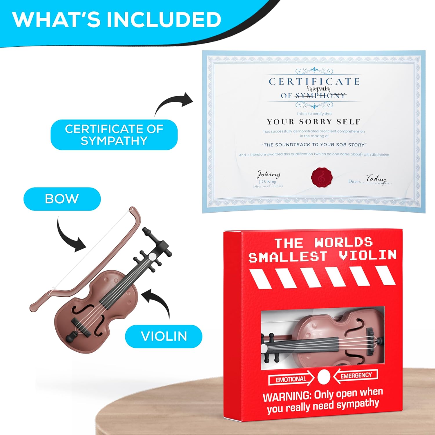 The violin embodies the classic ‘world’s smallest violin’ joke, often used to mock exaggerated complaints. The diminutive size and playful presentation of the violin symbolize a light-hearted acknowledgment of life’s minor frustrations, making it a perfect gift for anyone with a sense of humor. Its detailed craftsmanship and witty concept combine to create a memorable and amusing keepsake.
