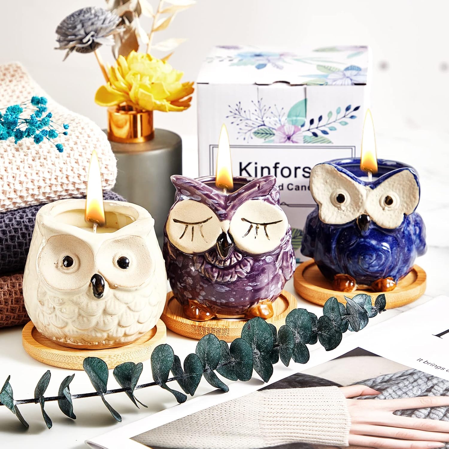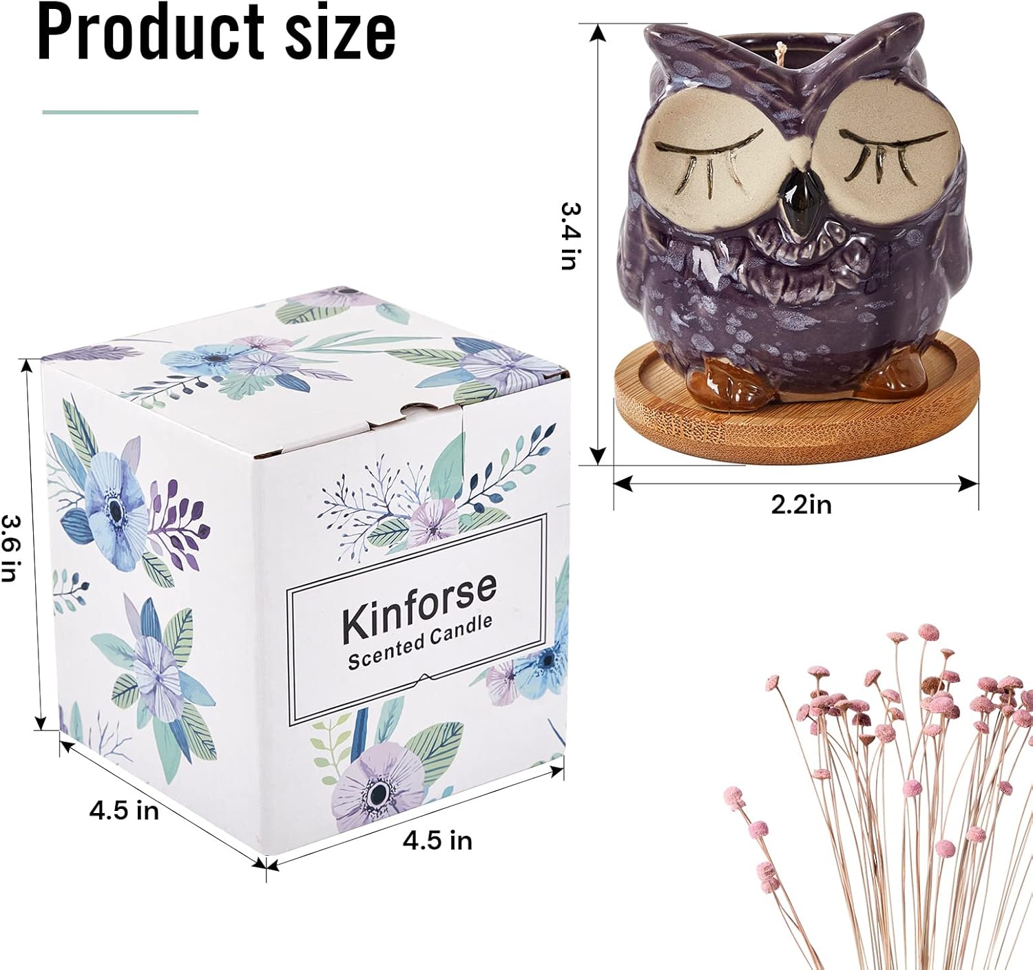 Kinforse Elegant Owl Design Lavender Scented Candle | Aromatherapy Candle Gift Set for Women, Birthday Gifts for Her | Thoughtful Birthday, Anniversary for Best Friend, Mom, Wife
