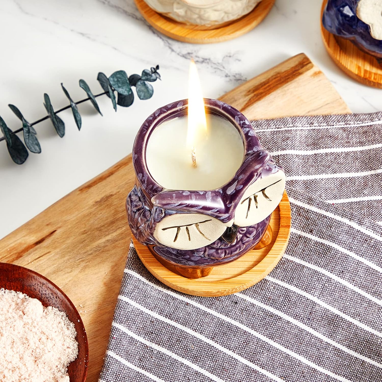 High Quality: The net weight of each candle is about 4.3 ounces and USES 100% lead-free wicks to provide a cleaner, longer burning time. Place owl scented candle in your backyard, patio dining, gardening, picnics, campsite, family reunions inside or outside your home to enjoy a peaceful night.