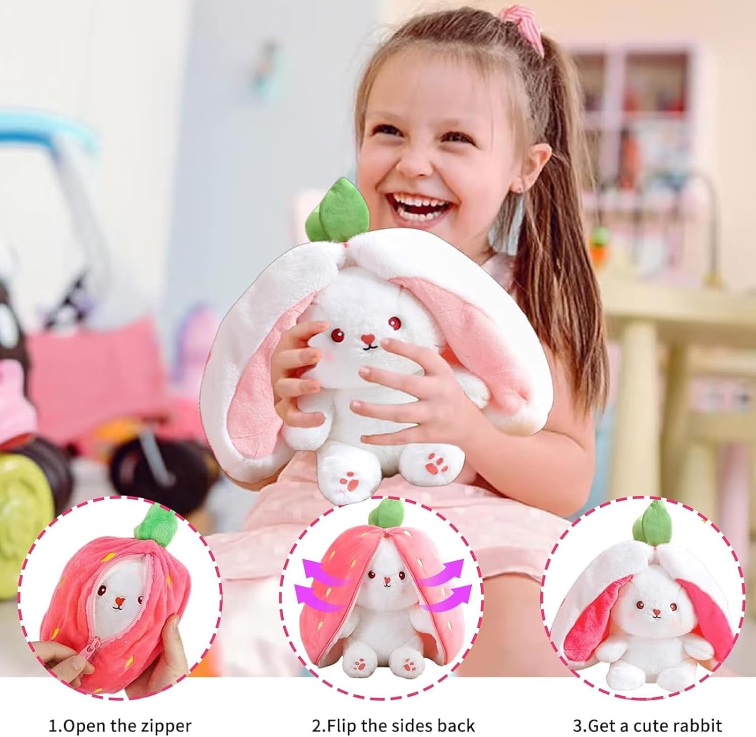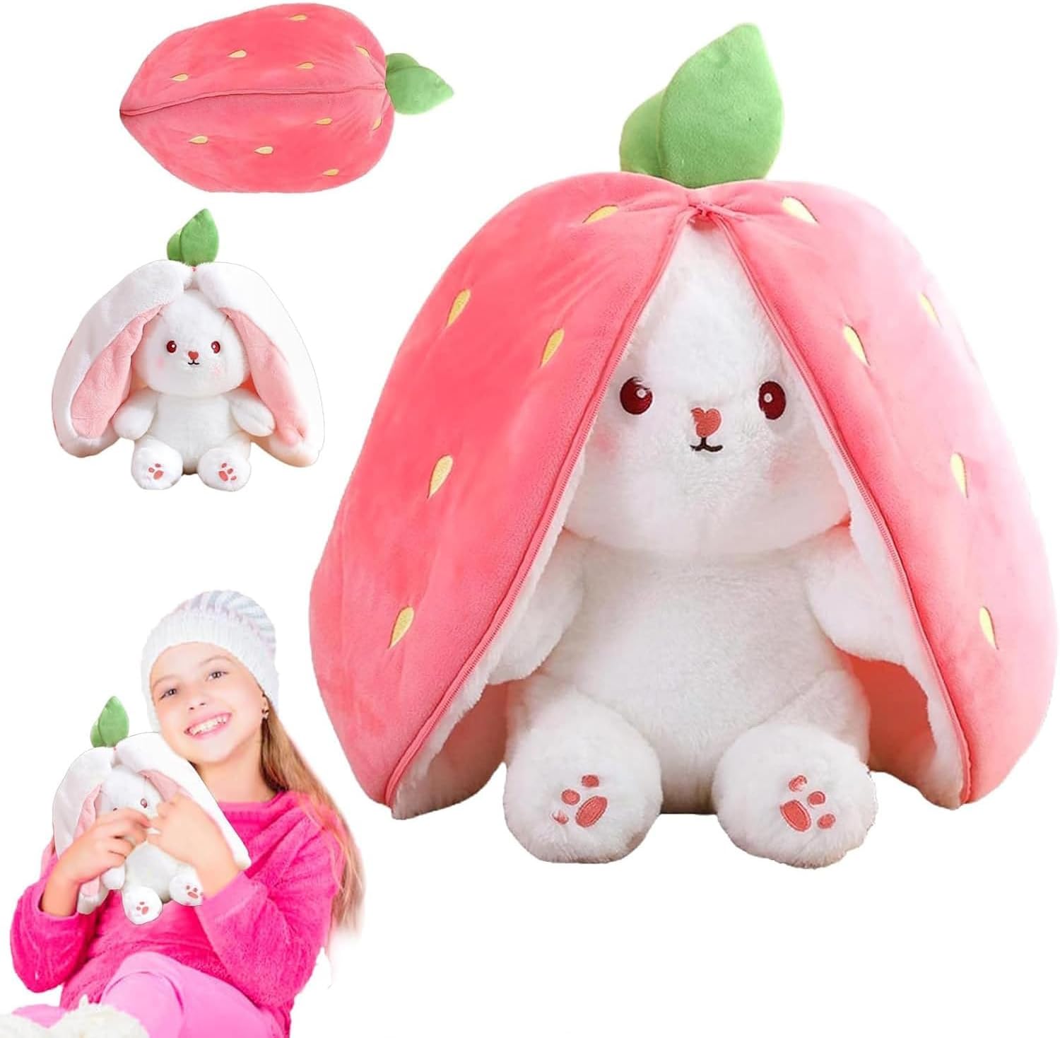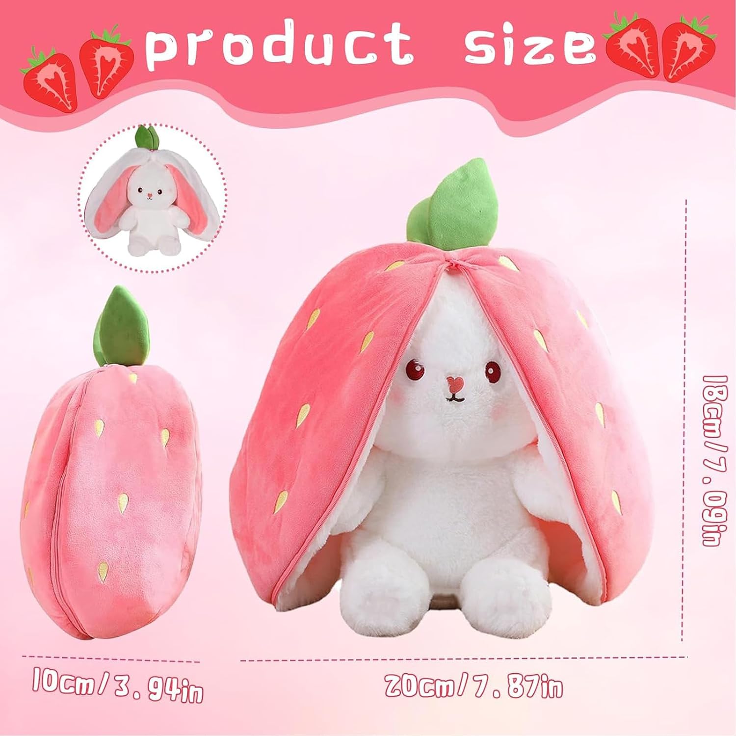 【Package Include】You will receive 1 pcs Strawberry Plushies Doll, the size of the rabbit toy is about: 18CM. Strawberry can transform into a bunny with big ears. The bunny toy is soft and lightweight, it’s the perfect plush travel toy!