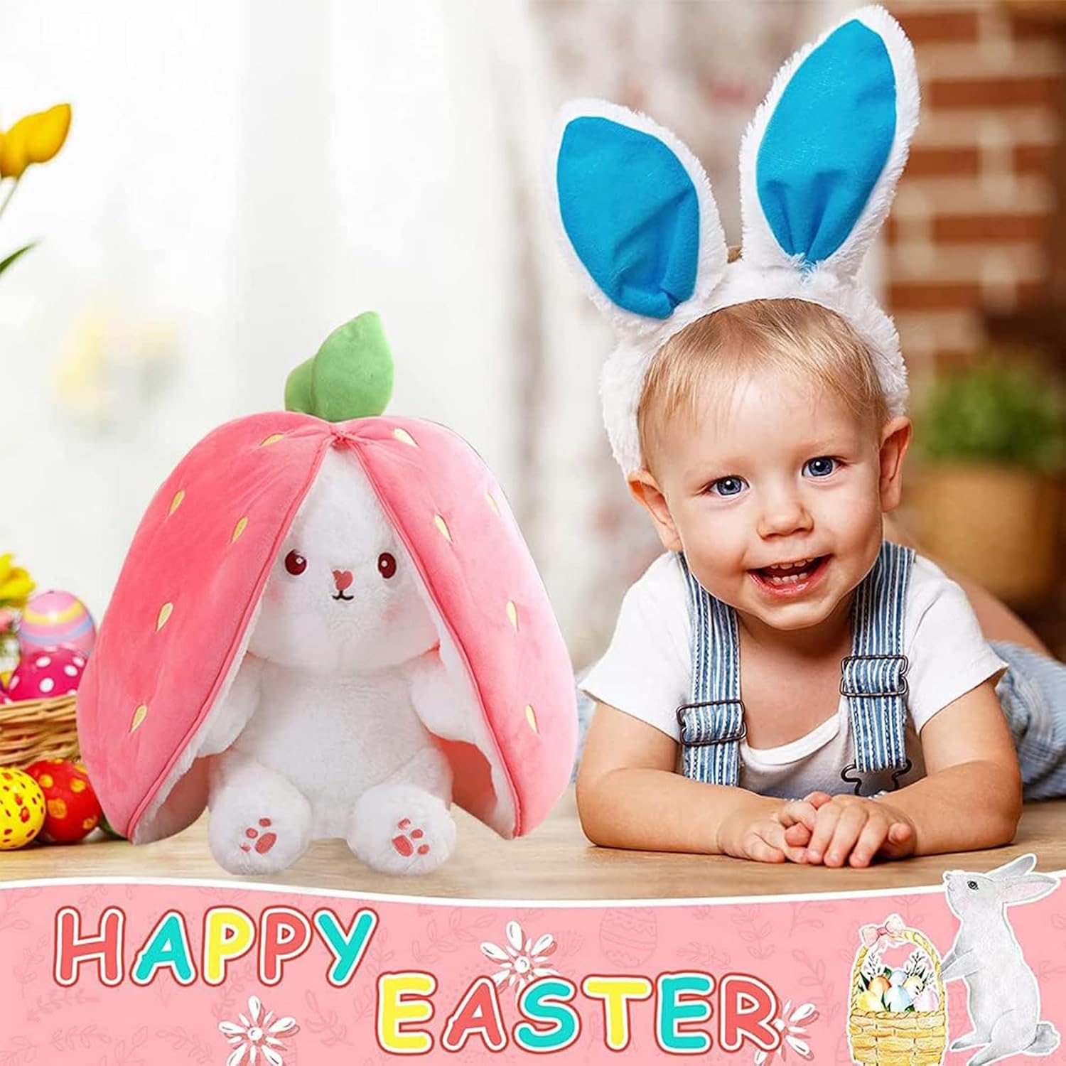 【Hide-and-Seek Bunny】Rabbit Plushies can add strong joy and festivity to your Easter. Designed with a hide-and-seek rabbit in strawberry pouch. Cute stuffed animal, easter plush, whether to display on a bedroom shelf with his lovely shape, added to an Easter gift basket or to be tucked under your little one’s arm ready for daily play.