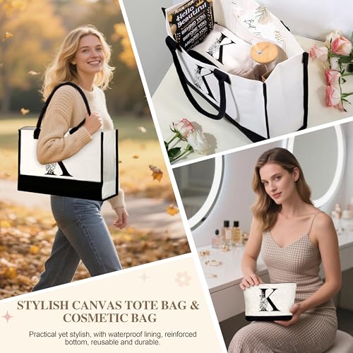 Lepiche Birthday Gifts for Women, Monogrammed Initial Gift for Teacher Wife Mom, Tote Bag