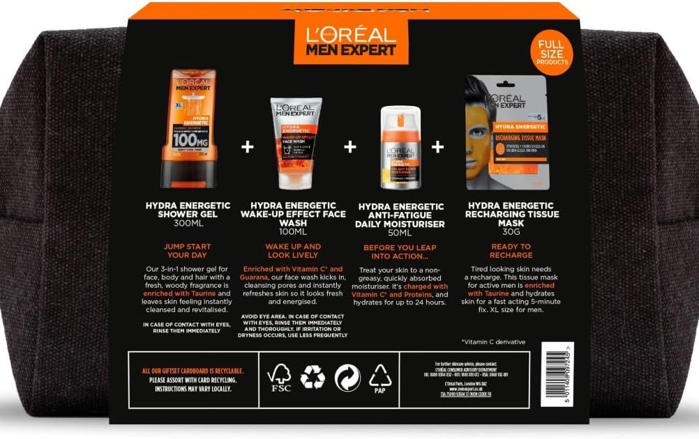 Be the first to review “L’Oreal Men Expert Gift Set for Men, Hydra Energetic Fully Charged Washbag: Shower Gel, Moisturiser for Men, Sheet Face Mask and Face Wash”