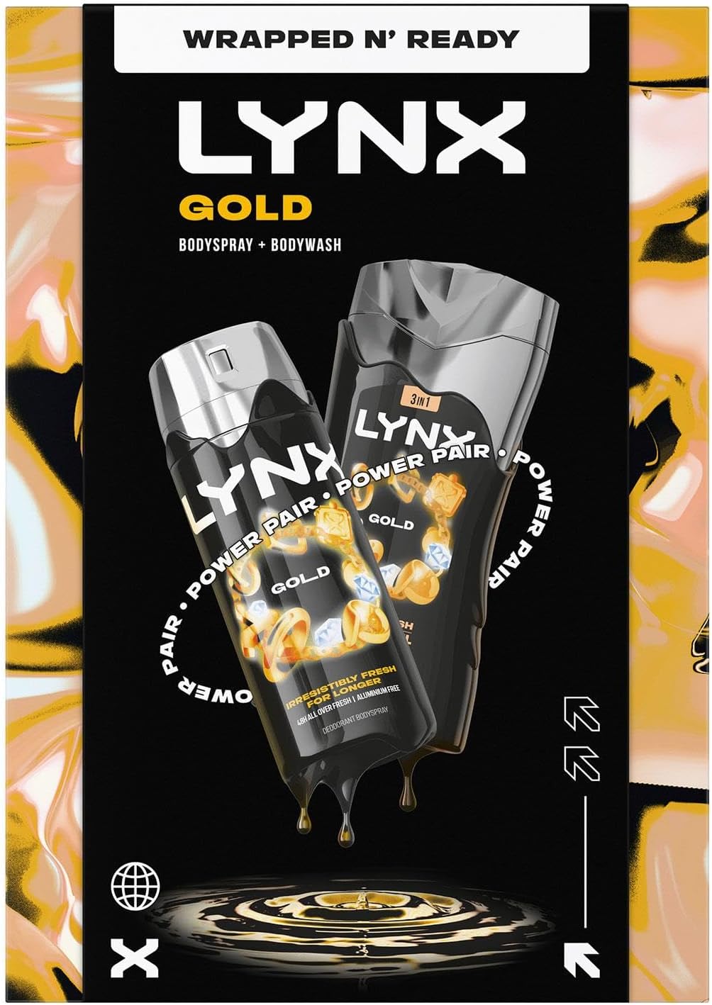 Package includes: 1 x Lynx Gold Duo Gift Set, Body Wash and Deodorant Spray