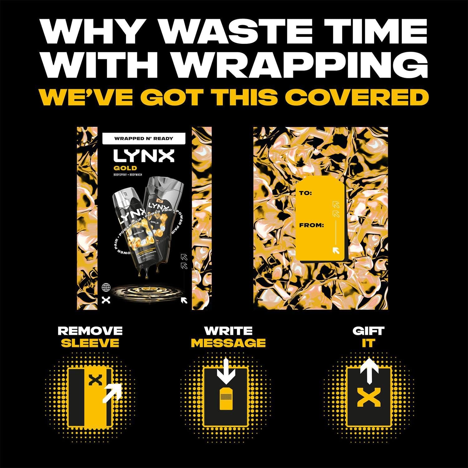 Lynx Gold Duo Gift Set for Him, Oud Wood and Vanilla Scent, Full-Size Body Wash and Deodorant Spray, 48H Freshness with Zinc Technology, Aluminium Free Grooming Gift for Men in Gift-Ready Packaging