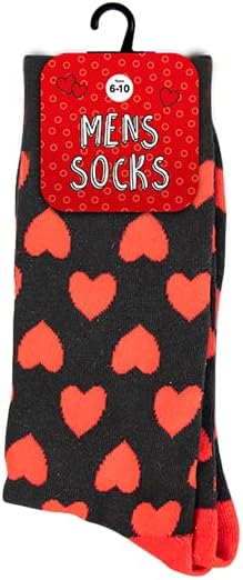Men’s Heart Socks, UK Size 6-10 – Perfect Valentine’s Day Gift for Him, Love Heart, Romantic Presents for Men, Boyfriend, Husband Mens Gift