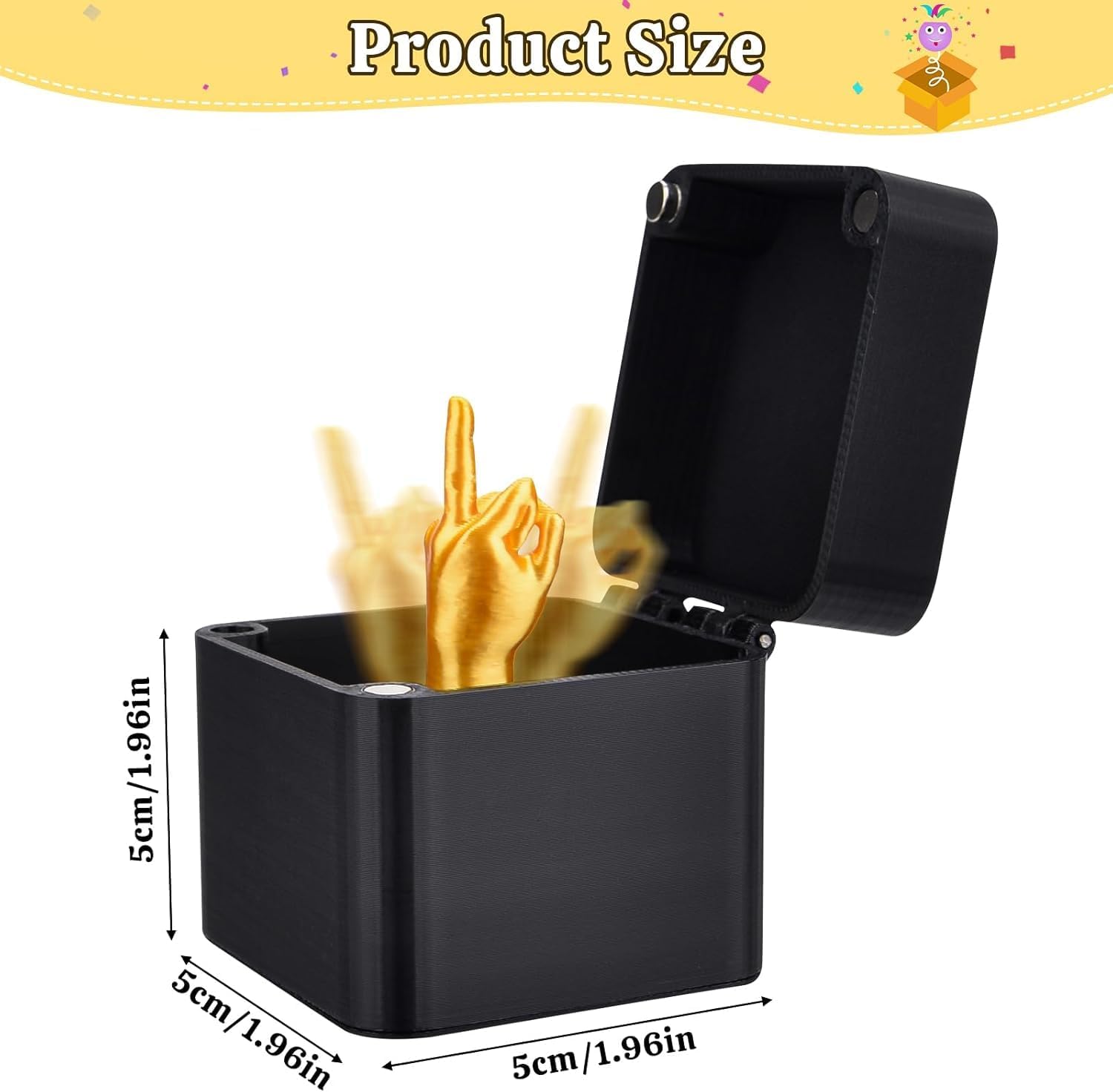 【Compact and Portable】Measuring 5 x 5 x 5 cm (approx. 2 x 2 x 2 inches), the middle finger in a box is compact enough to fit into any collection of quirky curiosities. Its size makes it a fun, unobtrusive gift. This little surprise box is sure to add a splash of humor and a touch of irreverence to any occasion.