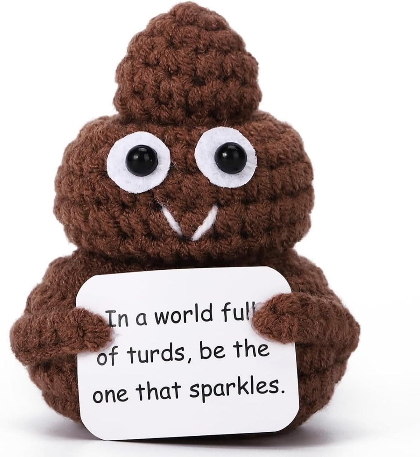 Mini Funny Gag Poop Knitted Figurines – Cute Crochet with Card, Unique Birthday Gift for Adults, Home & Party Decor