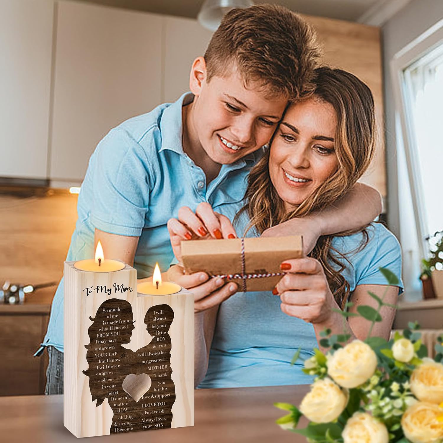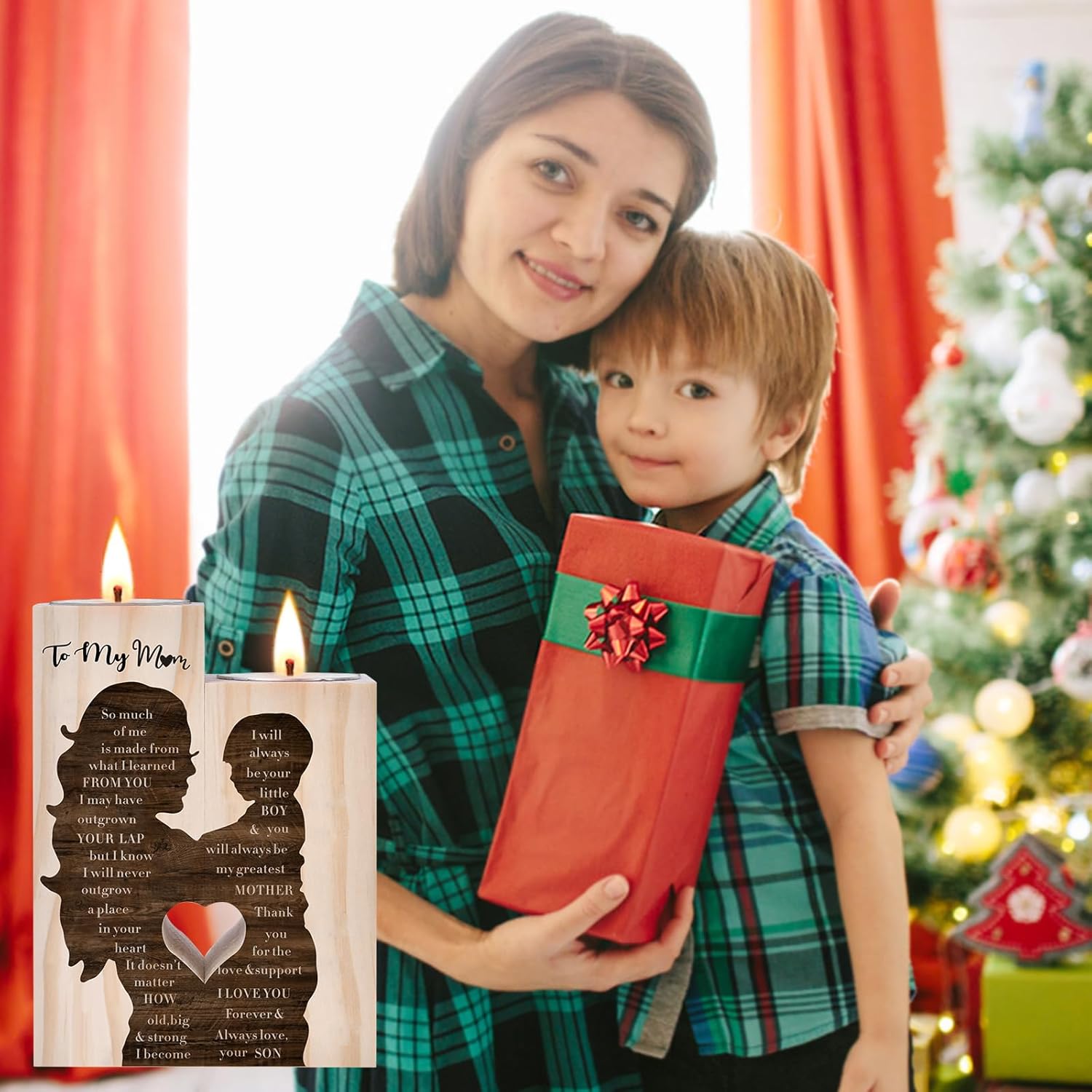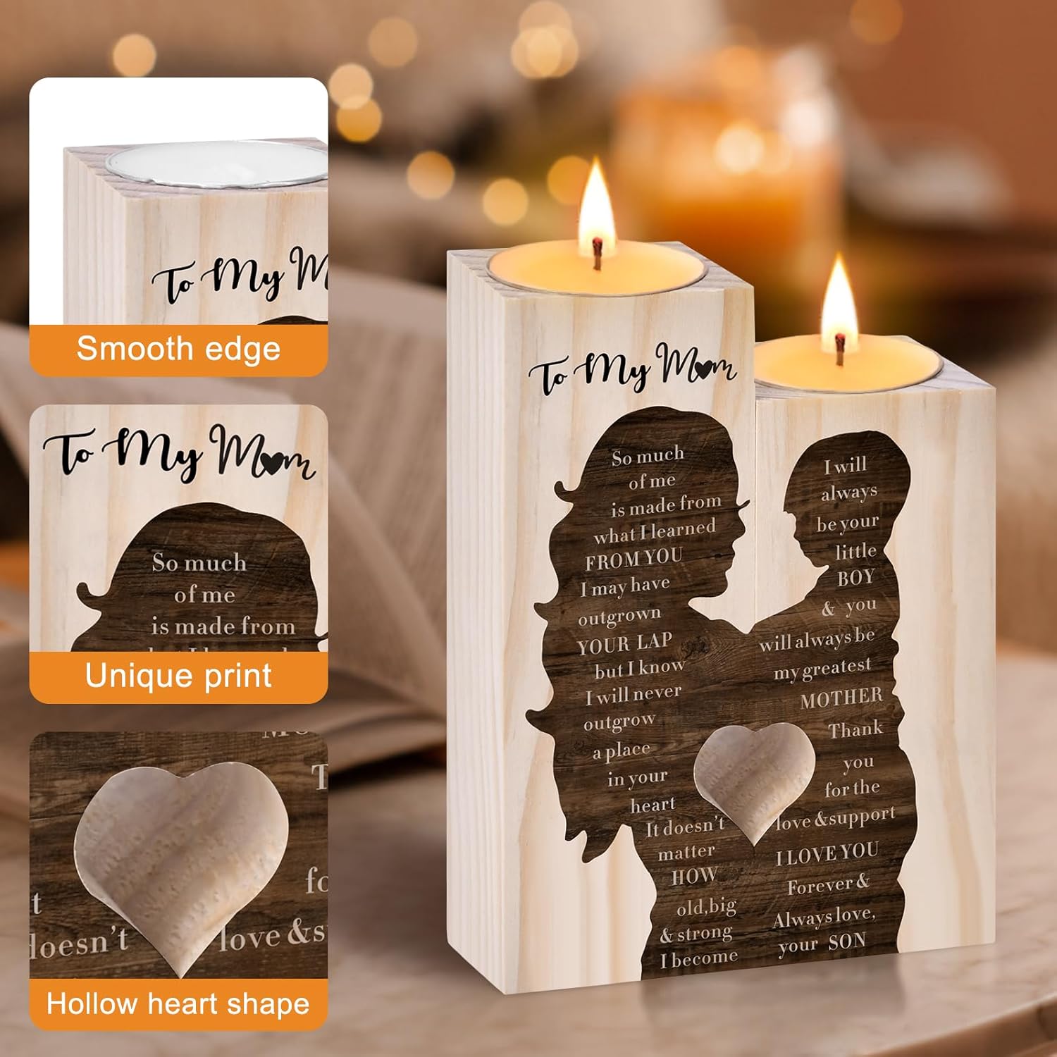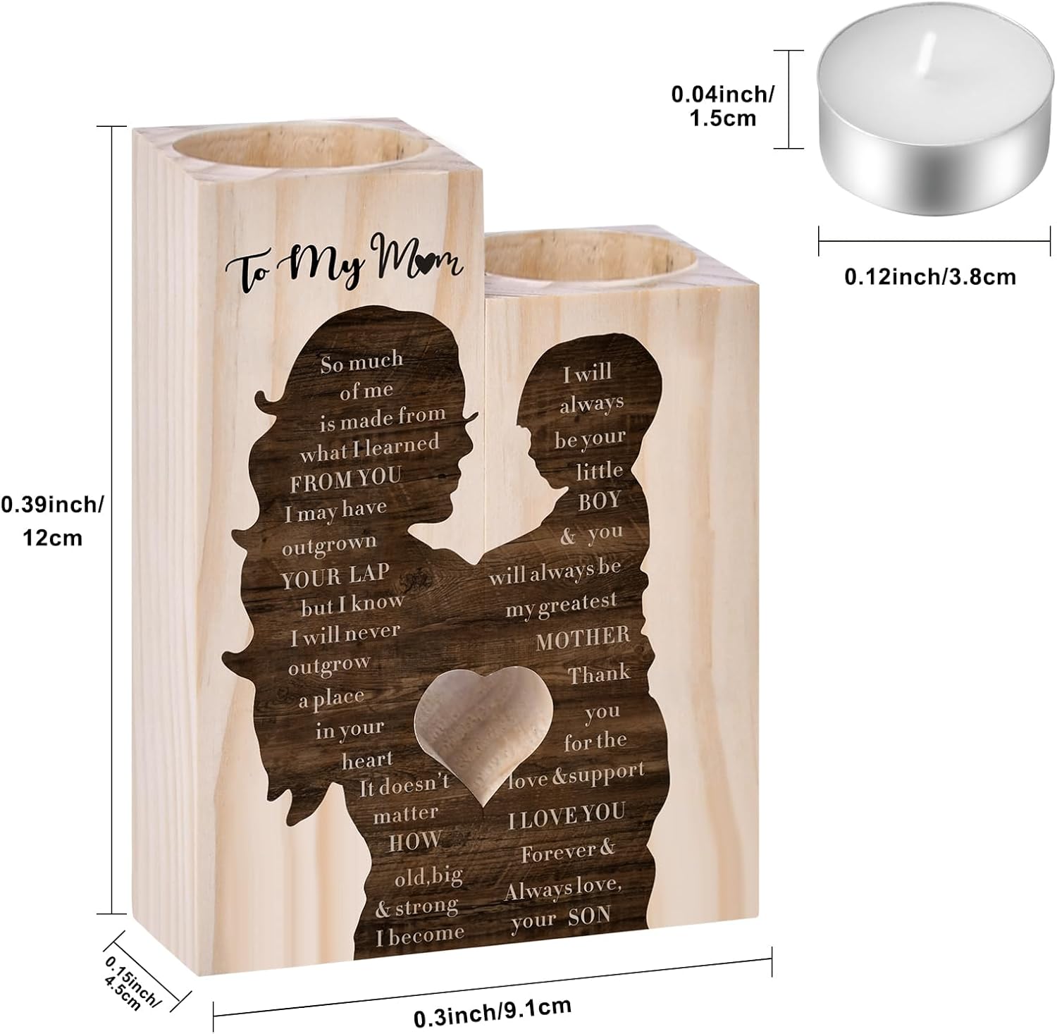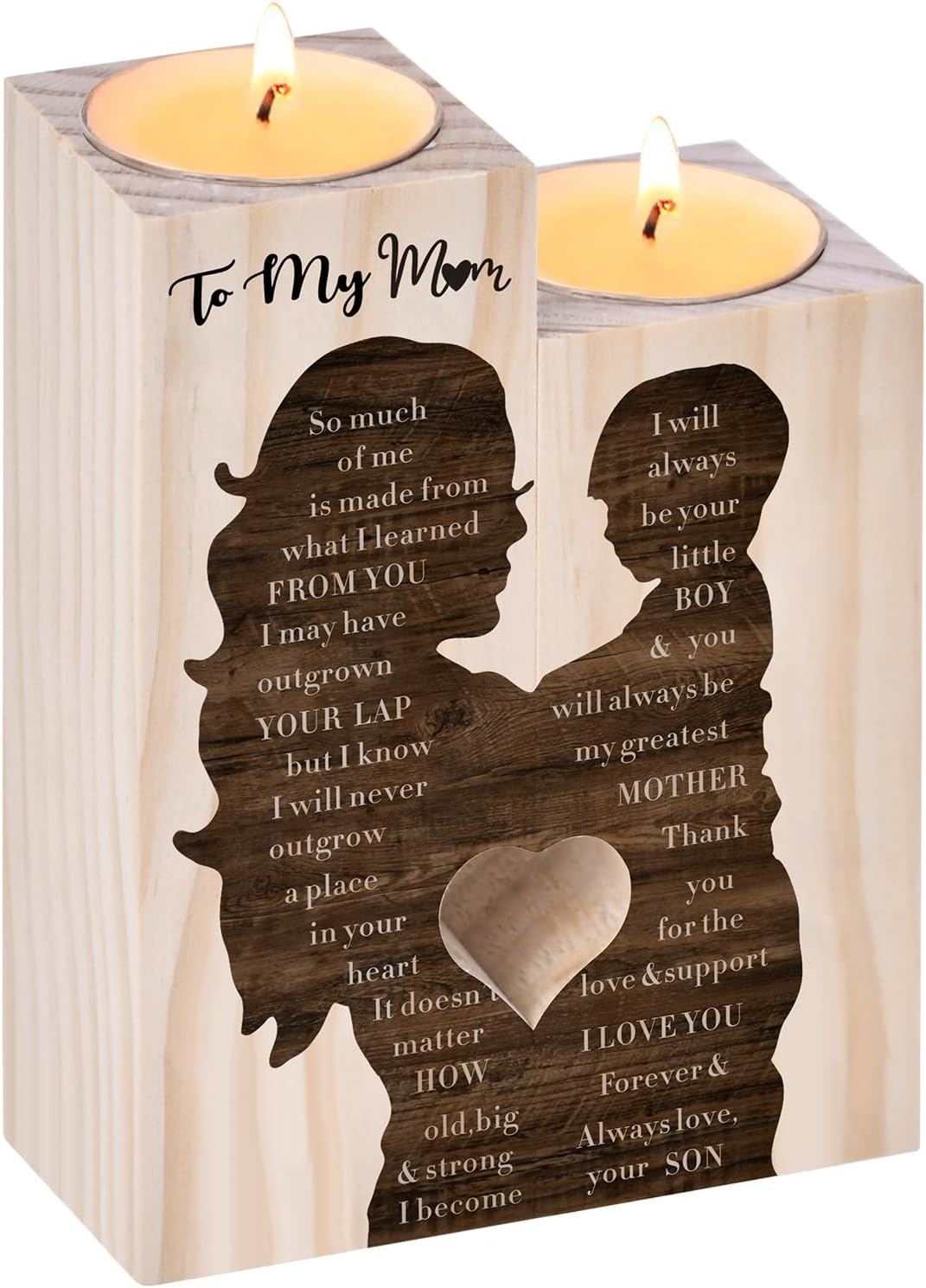 Mothers Day Candle Gifts for Mum from Son Daughter,Wooden Heart-shaped Craft Candlestick Shelf,Mum Birthday Gifts for Stepmum Grandma,Mothers Day Presents for Wife on Christmas Anniversary