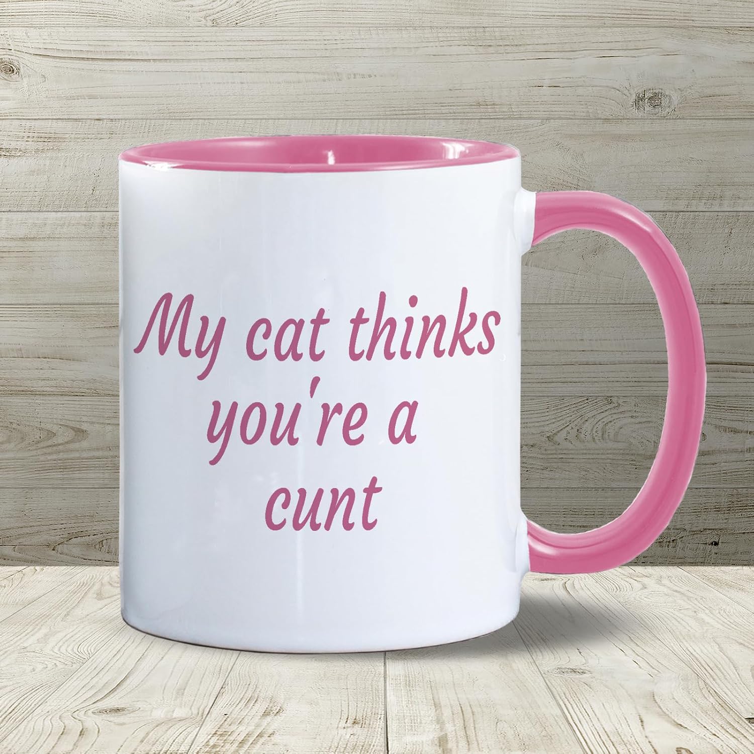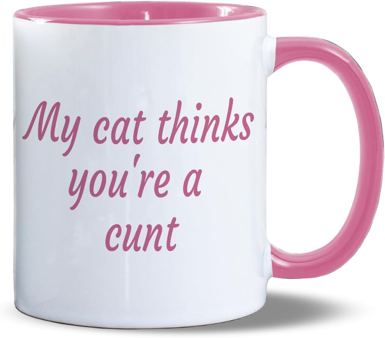 My Cat Thinks You’re A Cunt | Funny Gift Idea Cup Tea Coffee | 11oz Pink Inner/Handle Mug